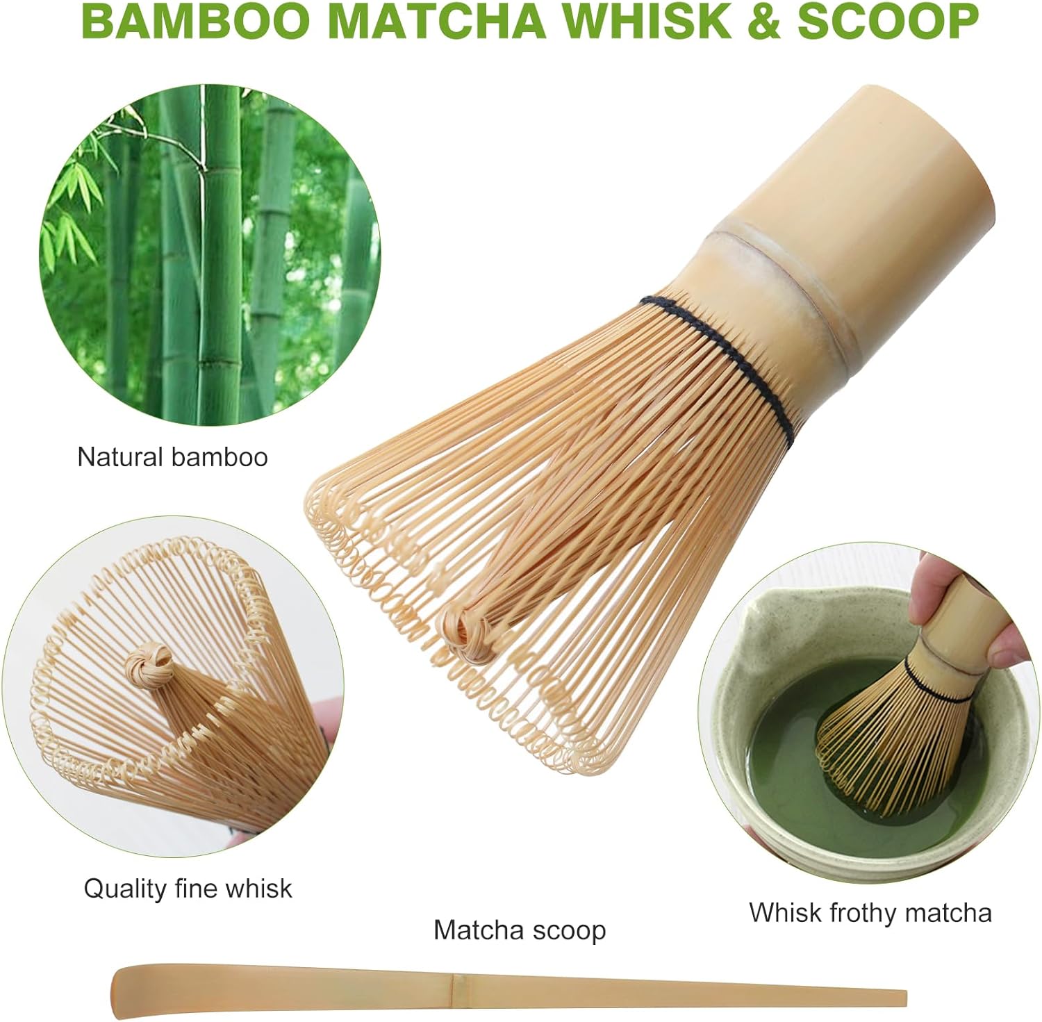 - Premium Bamboo Matcha Whisk for Flawless Froth: The matcha whisk (chasen) in this matcha whisk set features 100+ fine prongs for clump-free frothing. Handmade from natural bamboo, it’s the key tool in any matcha kit for authentic tea ceremonies.