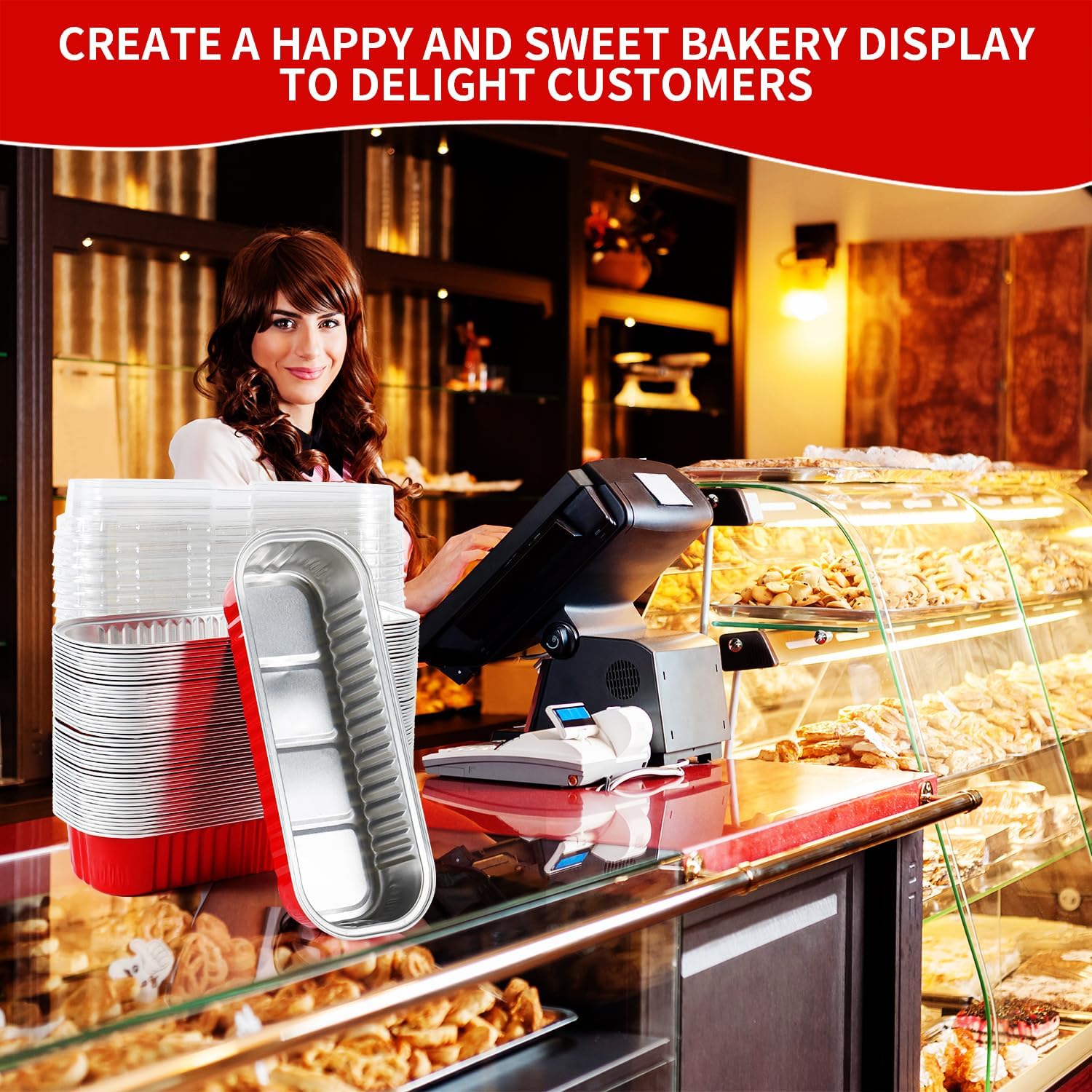 - 🔥 30 Pack Red Mini Loaf Pans with Lids & Spoons – Each set includes 30 durable food‑grade aluminum pans, 30 clear lids, 30 spoons, and 30 decorative sealing stickers. Perfect for home baking, parties, and gift packaging.