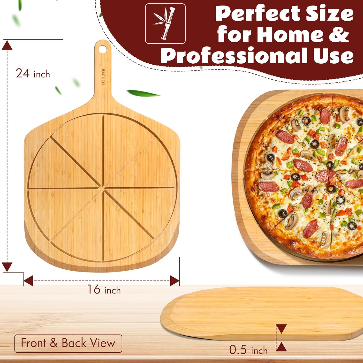 - EASY TO CLEAN AND GREAT GIFTS: The surface and edges of bamboo pizza peel are smooth, making cleaning more convenient. It is an ideal housewarming gift for family and friends. If you have any questions about our pizza cutting board for oven, please feel free to contact us.