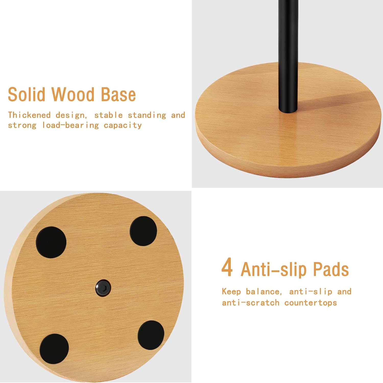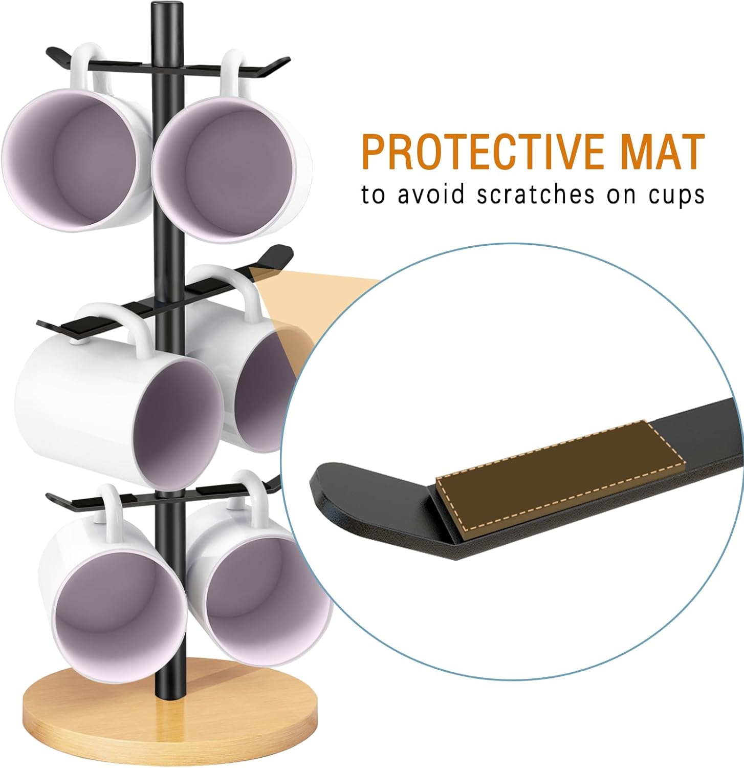- THICKER AND MORE STABLE BASE: The thicker wooden base ensures the stability of the mug tree for counter, even if the cups are taken out of balance the cup holder will not wobble or tip over. The 4 non-slip pads on the bottom are designed to help achieve good stability and prevent scratches on the countertop