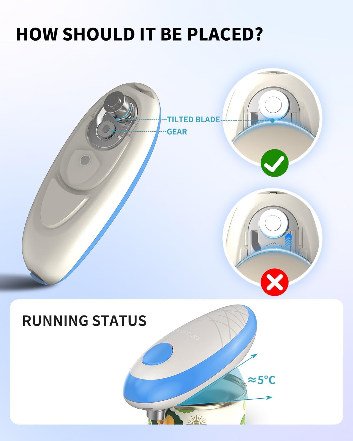 CIRCLE JOY Electric Can Opener, One-Touch Automatic Can Opening with Smooth Edges, Food Safety Handheld Battery-Operated Can Opener for Kitchen and Seniors, Blue