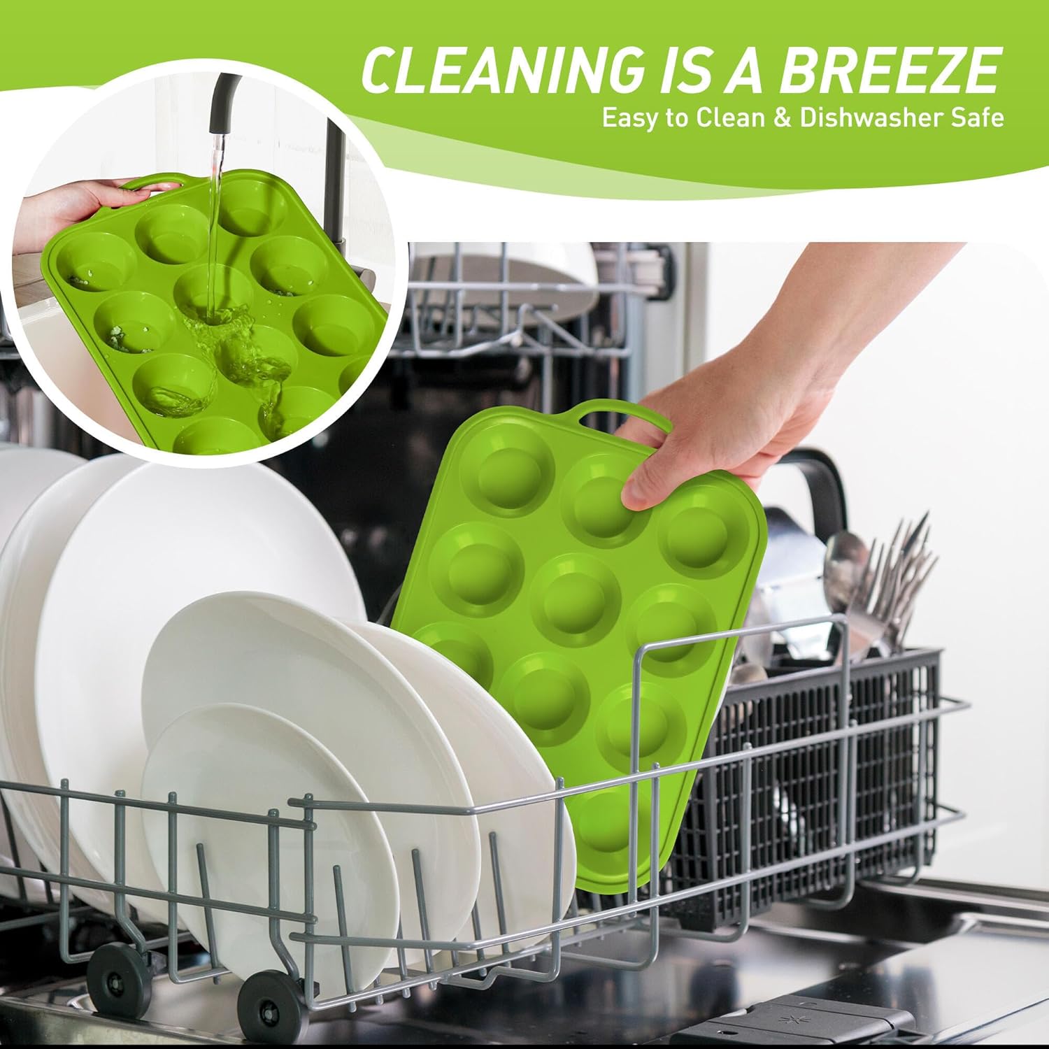 - 【Food Grade Silicone Muffin Tray】Safe for the oven, microwave, dishwasher, fridge, and freezer. With an impressive heat resistance range from -104°F to 446°F, it’s perfect for all your favorite baked goods. Oven-safe handles withstand repeated baking cycles without cracking, unlike cheaper silicone baking cupcake muffin pan with plastic components. Food grade silicone of our muffin pan with anti fouling and anti staining properties, tested over 1000 times and still maintains 99% freshness.