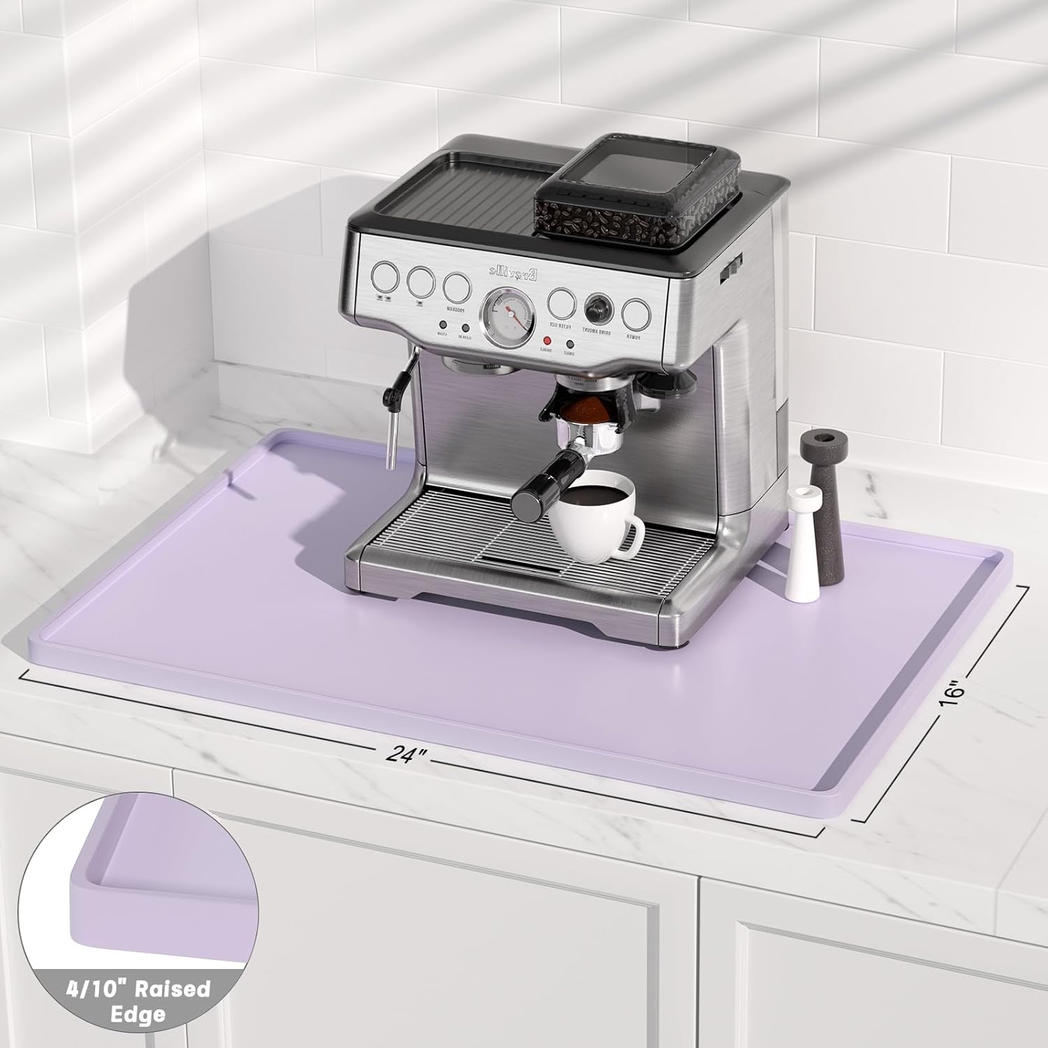 - Multi-Use Silicone Mat for Coffee & Kitchen: Fits 16"x24" espresso machines (Breville/De'Longhi). Use as pet food mat, blender pad, or dish drying mats for kitchen counter. A barista-approved essential for homes, cafes, and RVs – where mess meets style