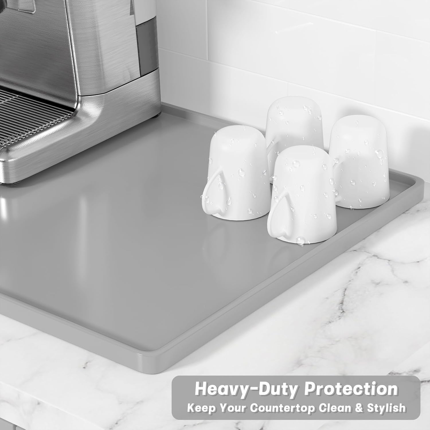 - Heat-Resistant Counter Protector: 0.4" raised edges trap spills (holds 8oz liquid). Withstands -40°F to 450°F – safely place hot espresso portafilters or boiling kettles directly on the mat. Protect marble, wood, or glass countertops from burns