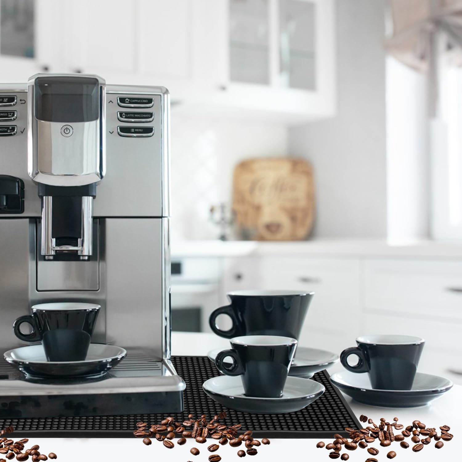 4 Pack 12 x 24 Inch Black Coffee Bar Mats, Rubber Bar Mat, Anti-Slip Bar Spill Mat for Countertop, Bartending, Kitchen, Dining Table