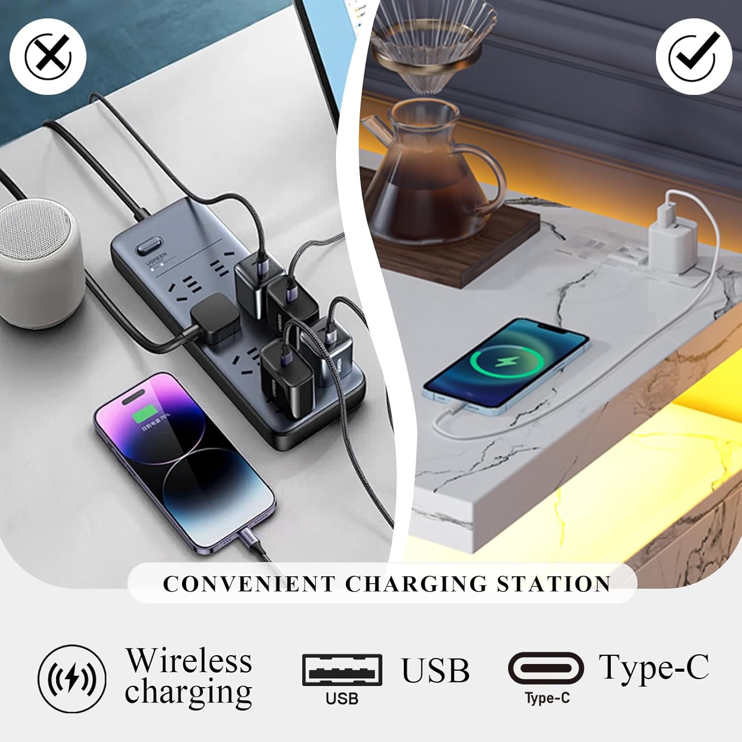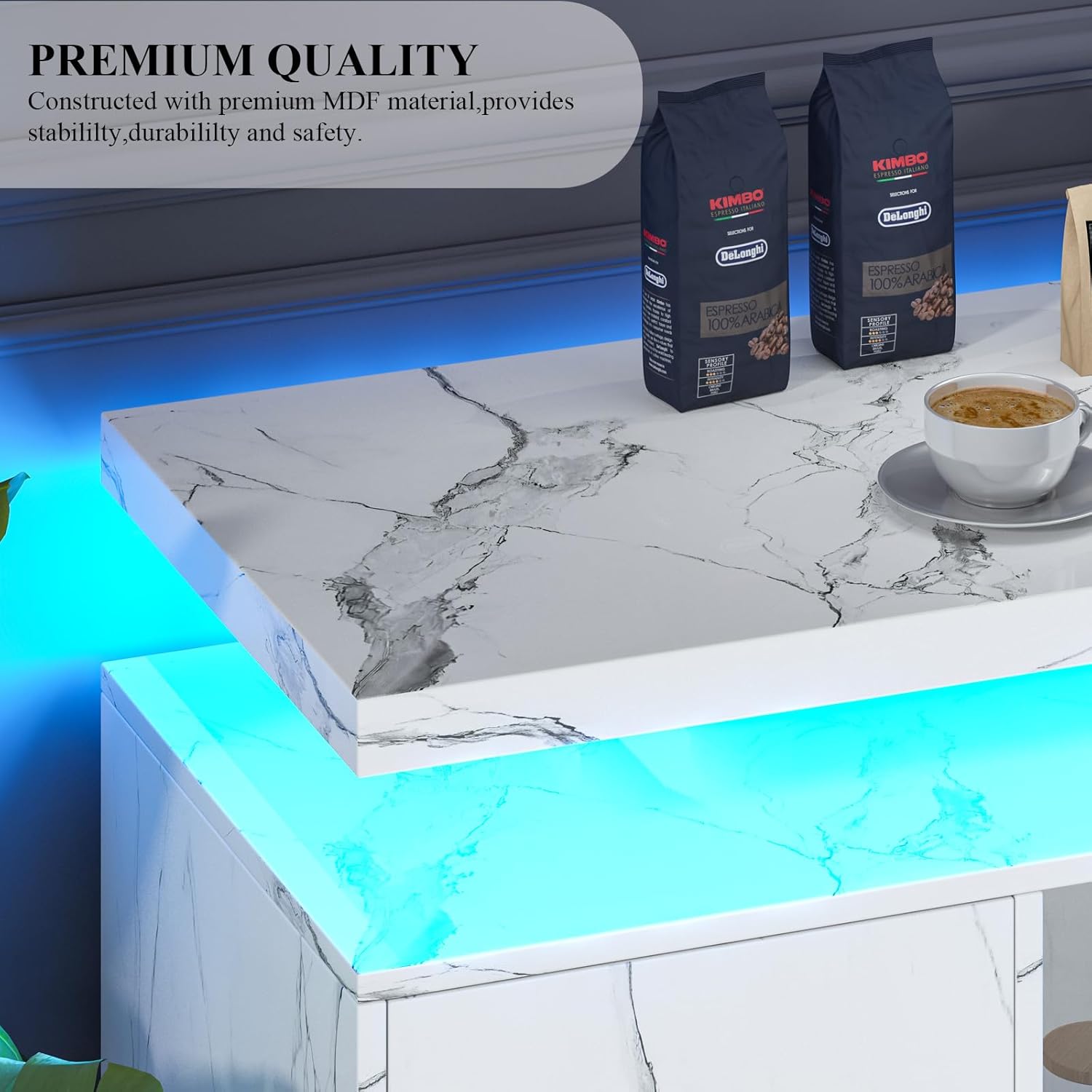 - Unique and Distinctive Floating Design: Coffee bar cabinet designed with floating desktop and atmosphered 16 LED lights will fully meets your fantasy of modern style buffet cabinet.Especially at night, soft and gentle lights surrounding the entire coffee bar cabinet, which makes you feel the desktop is floating in the air. White marble wood-grain material combined with golden handles achieve its luxurious appearance.