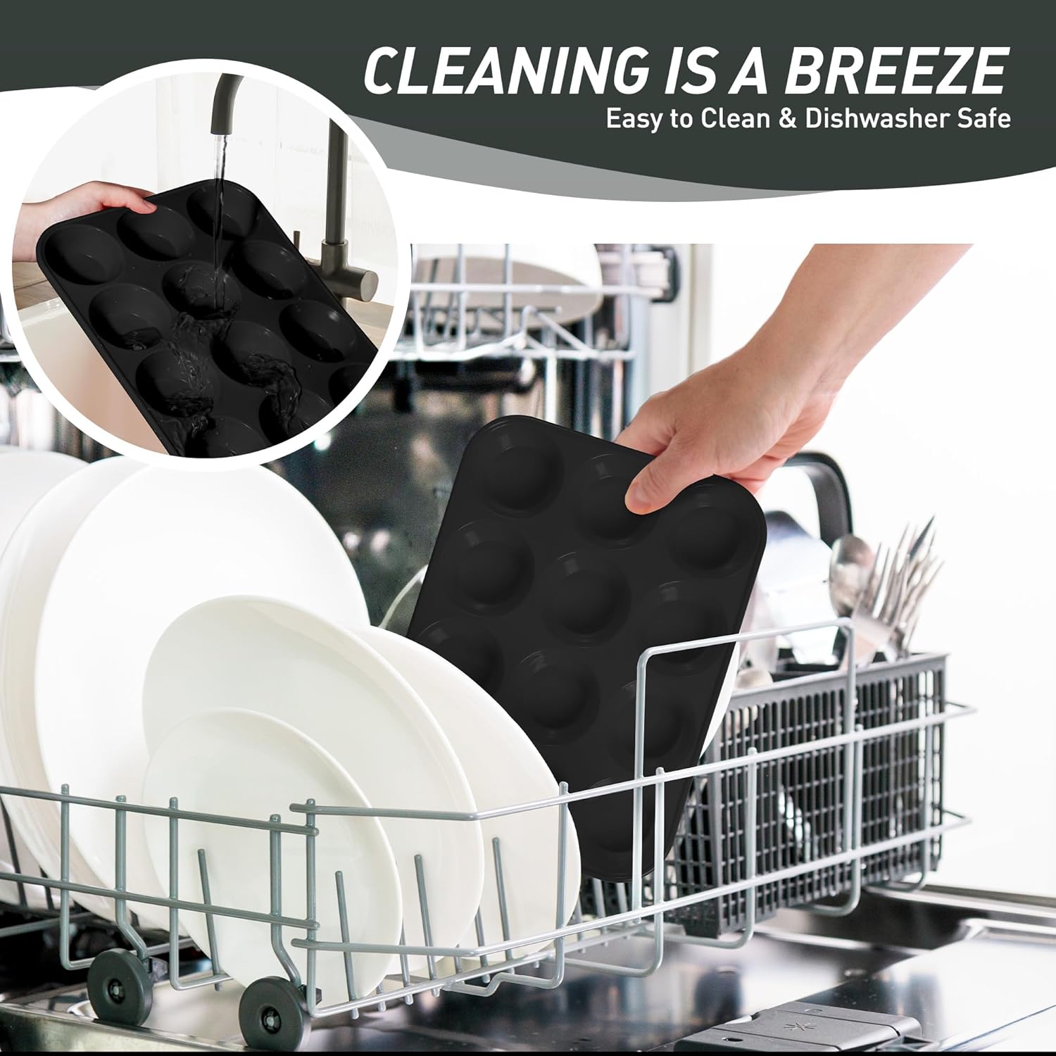 - Food Grade Silicone Muffin Tray: Safe for the oven, microwave, dishwasher, fridge, and freezer. With an impressive heat resistance range from -104°F to 446°F, it’s perfect for all your favorite baked goods. thick walls prevent heat transfer to countertops – safer than other thin plastic baking cupcake muffin pans. Food grade silicone of our baking cupcake muffin pans, maintaining 99% "like-new" appearance after heavy use.