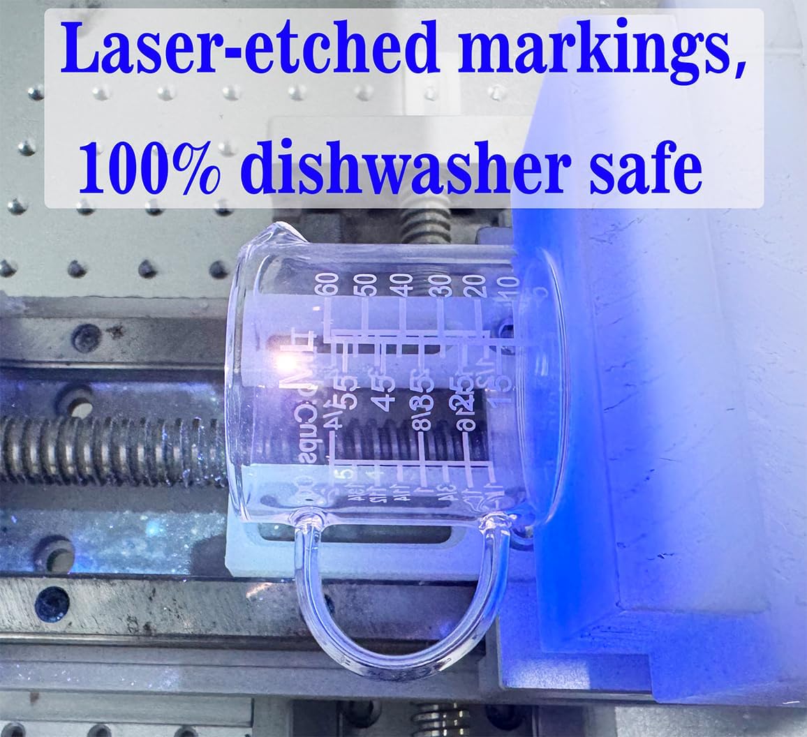 - 【Etched Graduations】: The measuring cup features etched graduations in Four units (Tablespoons,Cup,OZ,ML, ). The front of the handle displays Tablespoons,US Cups and OZ measurements, while the back shows ML measurements for precise work. This ensures you can measure all types of liquids and follow any recipe with ease. It is 100% dishwasher safe, allowing you to trust it for hassle-free cleaning