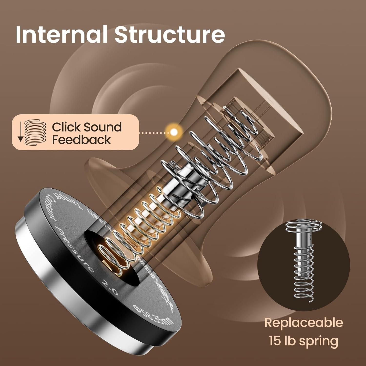 - Why 3 Spring-loaded Tamper? Have you frustrated of the unstable coffee flavor caused by uneven extraction? Our espresso tamper features an original 3-spring design that provides a constant pressure of 30lbs, ensuring consistent flavor extraction every time.