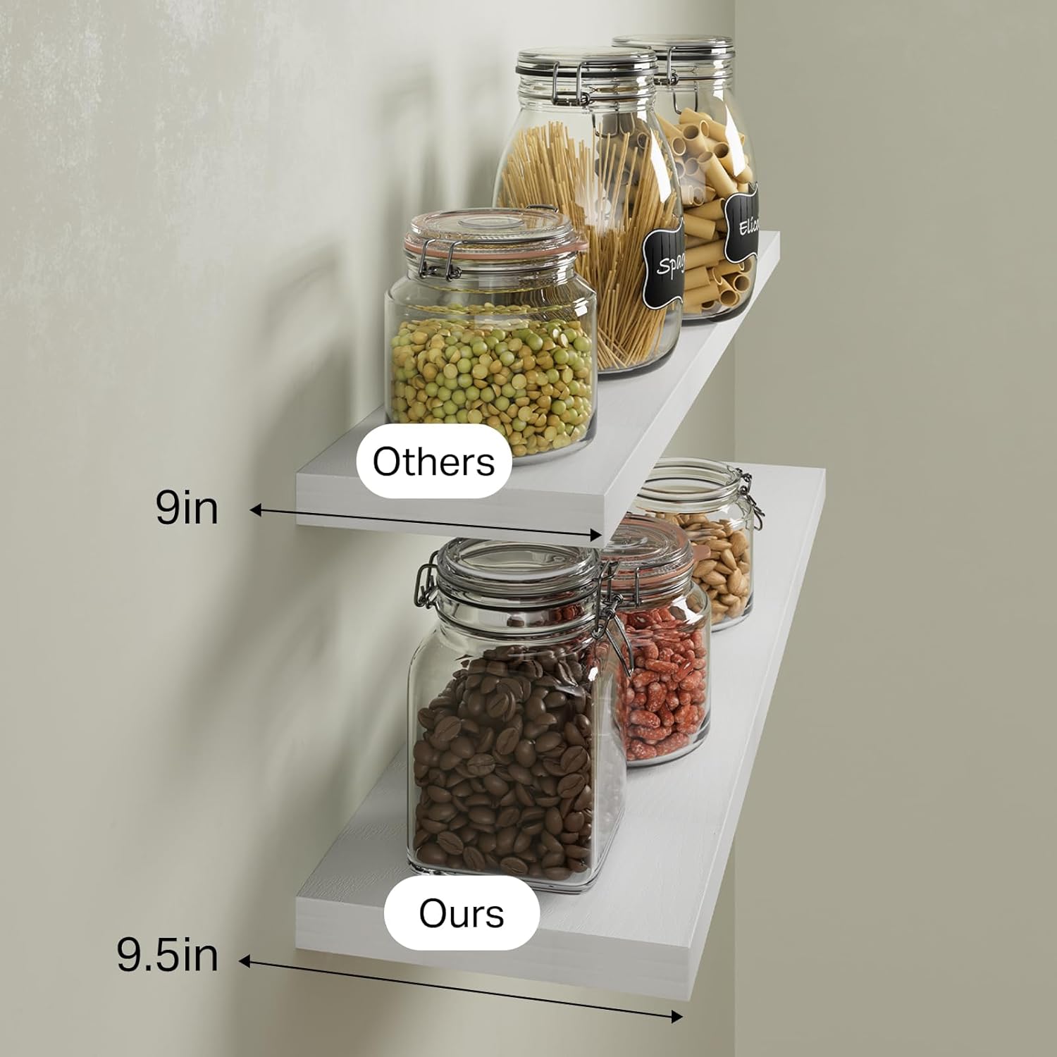 - 𝐒𝐩𝐚𝐜𝐢𝐨𝐮𝐬 & 𝐅𝐮𝐧𝐜𝐭𝐢𝐨𝐧𝐚𝐥 𝐒𝐢𝐳𝐞 – At 𝟑𝟔 𝐢𝐧𝐜𝐡𝐞𝐬 𝐥𝐨𝐧𝐠, these shelves 𝐩𝐫𝐨𝐯𝐢𝐝𝐞 𝐚𝐦𝐩𝐥𝐞 𝐬𝐩𝐚𝐜𝐞 𝐟𝐨𝐫 𝐨𝐫𝐠𝐚𝐧𝐢𝐳𝐢𝐧𝐠 𝐨𝐫 𝐬𝐡𝐨𝐰𝐜𝐚𝐬𝐢𝐧𝐠 𝐢𝐭𝐞𝐦𝐬 𝐰𝐢𝐭𝐡𝐨𝐮𝐭 𝐜𝐫𝐨𝐰𝐝𝐢𝐧𝐠 𝐲𝐨𝐮𝐫 𝐰𝐚𝐥𝐥. Perfect for displaying essentials or decorative accents