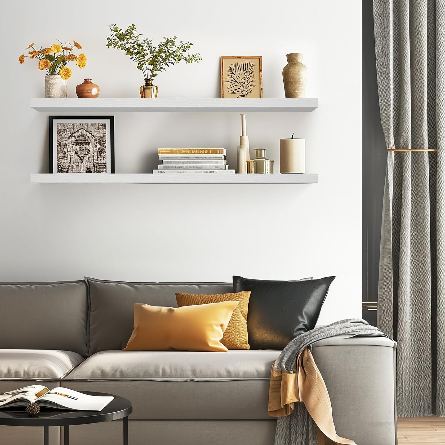 - 𝐒𝐩𝐚𝐜𝐢𝐨𝐮𝐬 & 𝐅𝐮𝐧𝐜𝐭𝐢𝐨𝐧𝐚𝐥 𝐒𝐢𝐳𝐞 – At 𝟒𝟖 𝐢𝐧𝐜𝐡𝐞𝐬 𝐥𝐨𝐧𝐠, these shelves 𝐩𝐫𝐨𝐯𝐢𝐝𝐞 𝐚𝐦𝐩𝐥𝐞 𝐬𝐩𝐚𝐜𝐞 𝐟𝐨𝐫 𝐨𝐫𝐠𝐚𝐧𝐢𝐳𝐢𝐧𝐠 𝐨𝐫 𝐬𝐡𝐨𝐰𝐜𝐚𝐬𝐢𝐧𝐠 𝐢𝐭𝐞𝐦𝐬 𝐰𝐢𝐭𝐡𝐨𝐮𝐭 𝐜𝐫𝐨𝐰𝐝𝐢𝐧𝐠 𝐲𝐨𝐮𝐫 𝐰𝐚𝐥𝐥. Perfect for displaying essentials or decorative accents