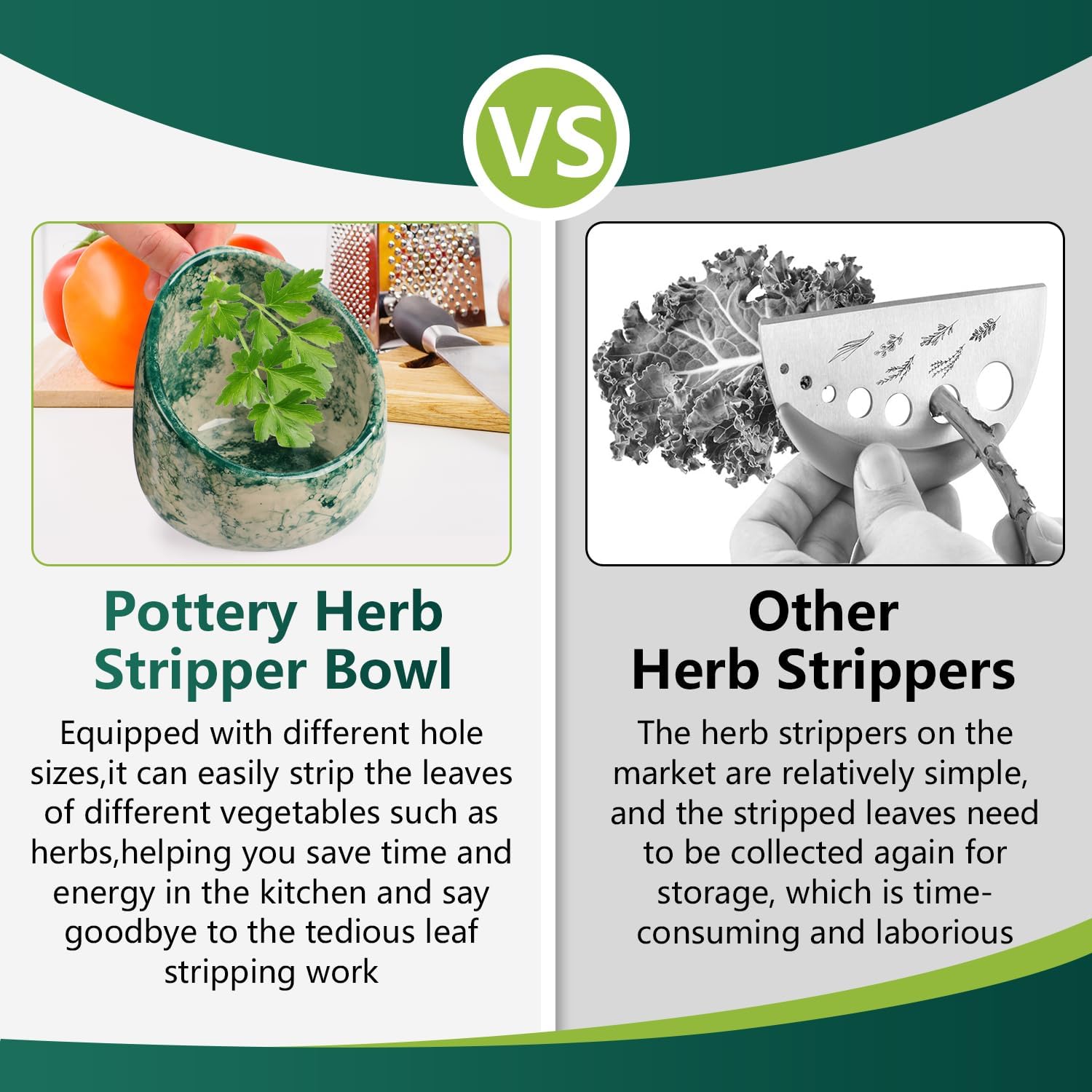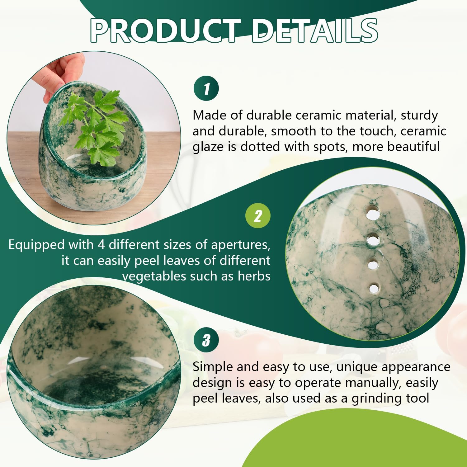 - 【Quickly Peel Leaves】This ceramic herb peeling bowl, with different sizes of apertures, can easily peel the leaves of different vegetables such as herbs, helping you save time and energy in the kitchen and say goodbye to tedious leaf peeling work