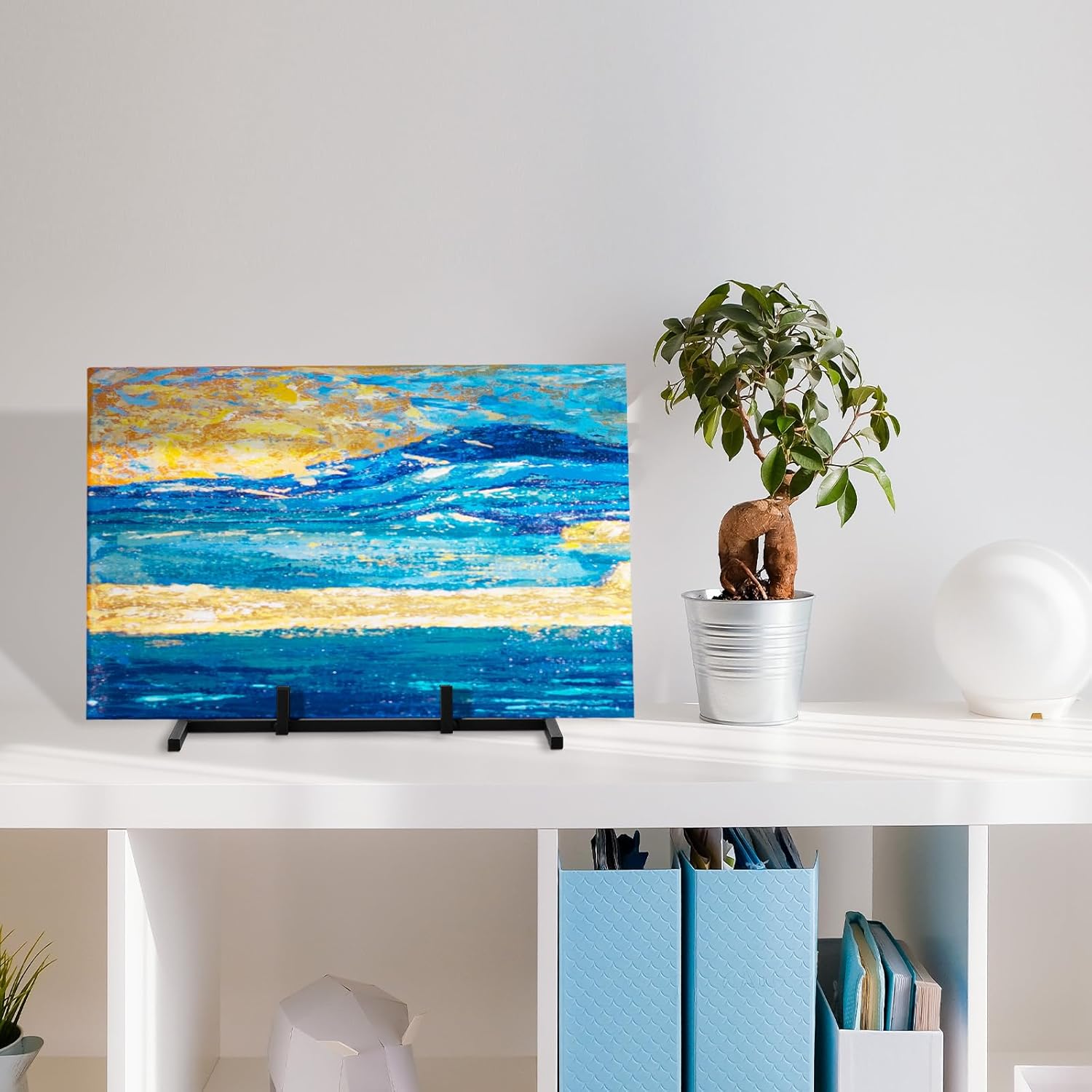 2 Pcs Metal Glass Display Stands Easel for Stained,ceramic Tiles, Plaques, for Picture, Collectibles Ceramic Tiles Photo Office Trade Show Office, or Home