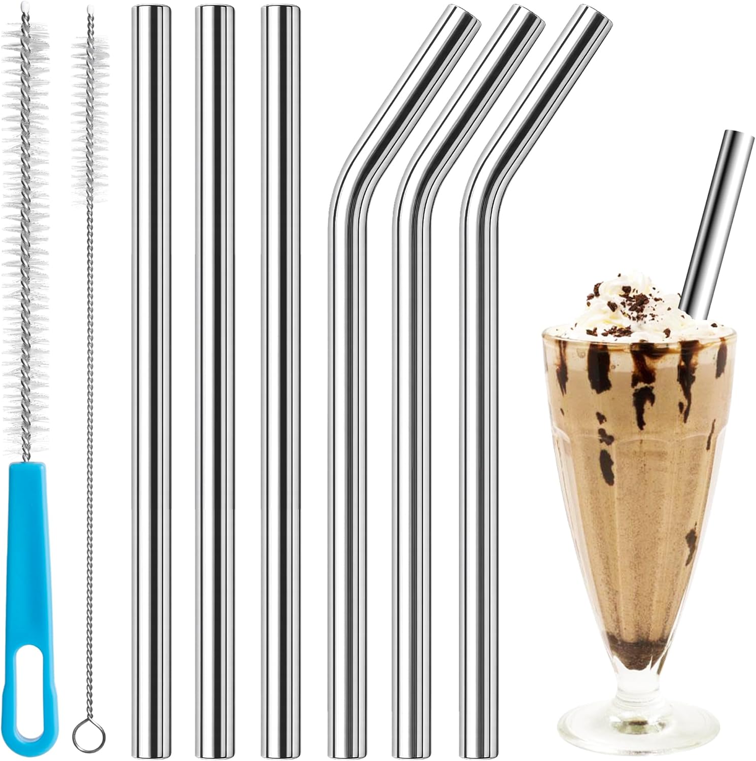 Metal Smoothie Straws Reusable, 0.4'' Extra Wide Stainless Steel Drinking Straws for Milkshake, Smoothie, Thick Beverages, Cleaning Brush