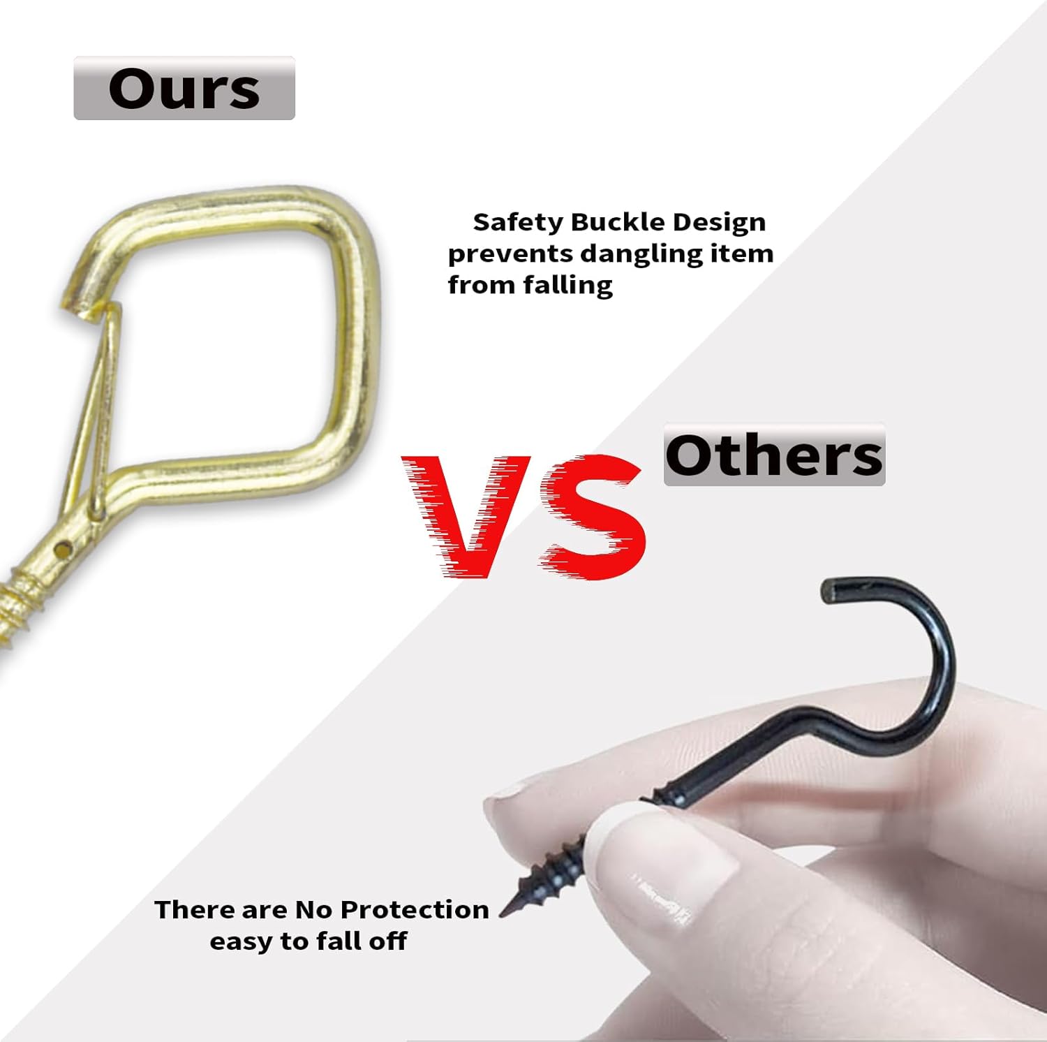 50 PCS Gold Eye Screw Hooks for Hanging Heavy Duty with Safety Buckle.Metal Ceiling Hooks for Hanging Plants Cup Wind Chime Bird Feeders Patio Lights at Indoor&Outdoor