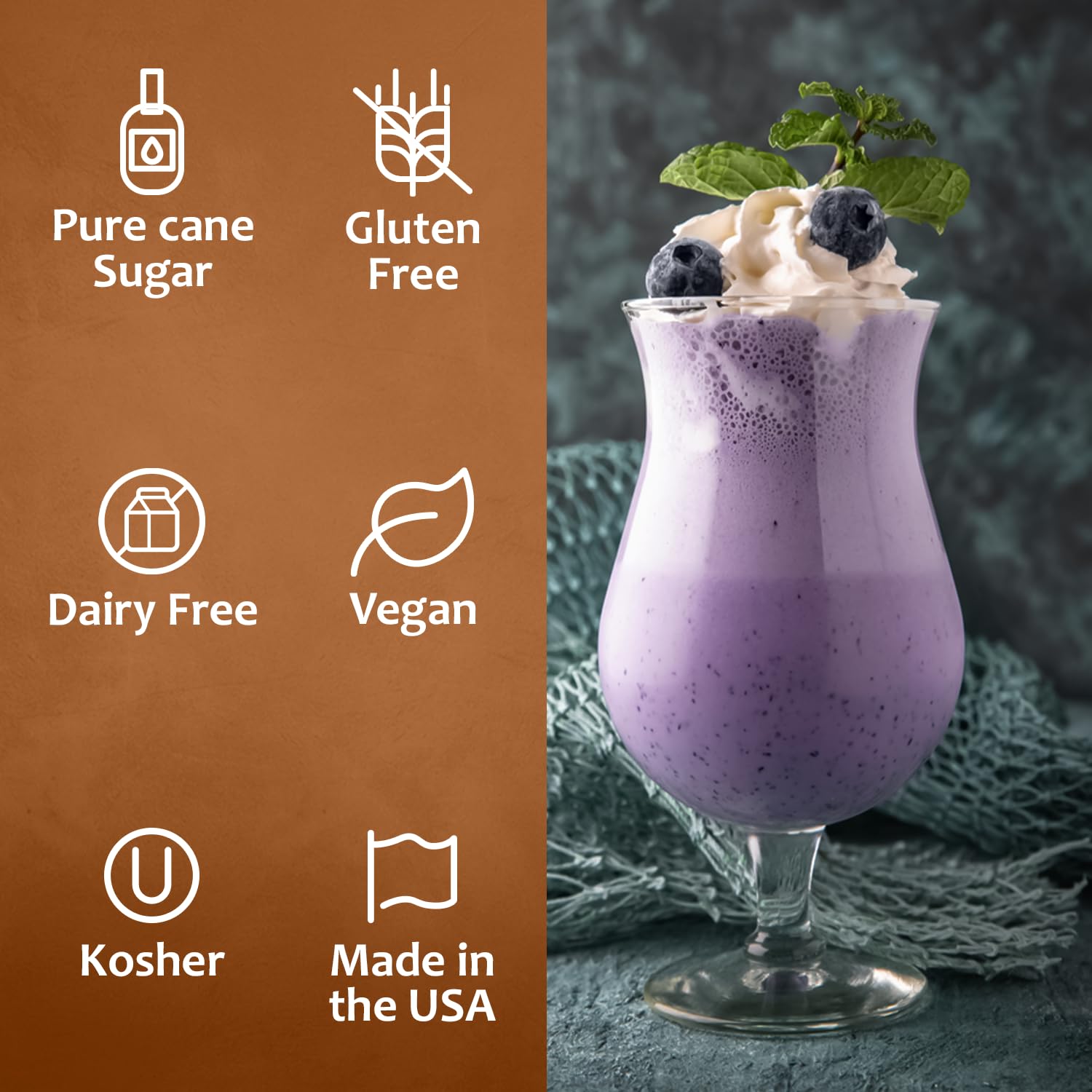 - VANILLA BLUEBERRY SYRUP: Experience paradise in a bottle with Syruvia’s Vanilla Blueberry Syrup. The smooth, timeless vanilla blends perfectly with a vibrant burst of blueberry, creating an irresistible flavor for your cocktails, drinks, and more. Kosher and gluten-free, this syrup elevates your mixing experience with ease and deliciousness.