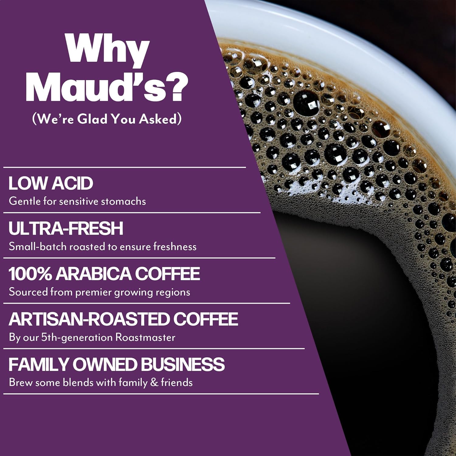 - [Maud’s Legacy]: As a small, family-owned business, we treat our customers like family. If you're ever unsatisfied with our medium roast coffee pods, we promise to make it right. Committed to sustainability, we make sure that every step we take in bringing you your favorite coffee is thoughtful, ethical, and environmentally responsible, and produce our products in a solar-powered facility.