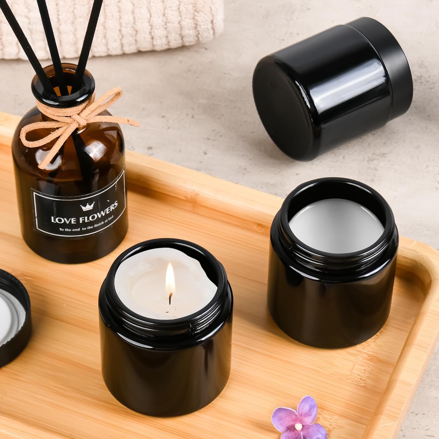 Glass Jars with Lids,Eco-Friendly Cosmetic Containers with Airtight Black Lids & Liners, Multi-Color Options for Cream, Lotion, Body Butter, DIY Skincare Travel Jars (Black, 4oz)