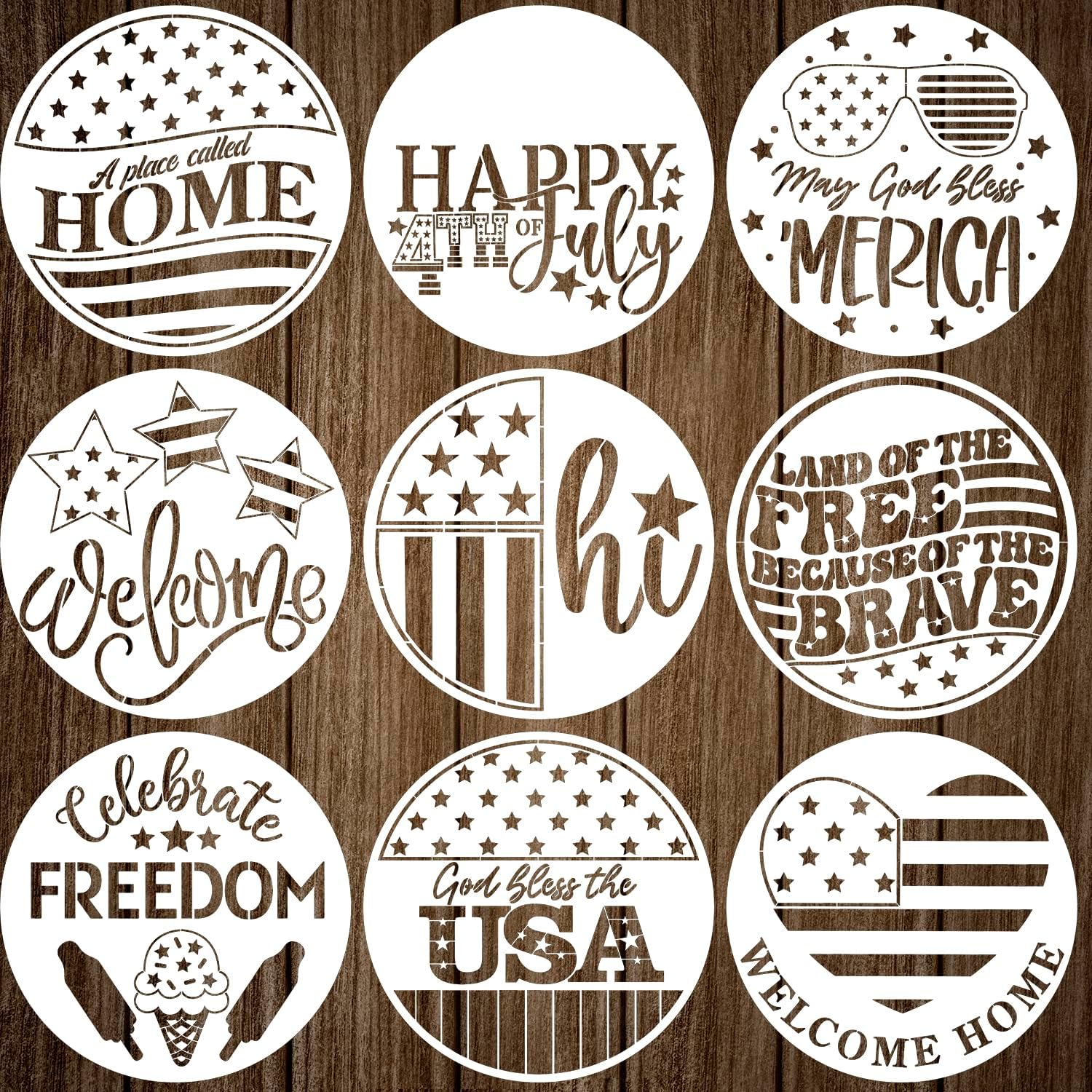 - Package Content:9pcs Independence Day stencils for wood sign, reusable Patriotic welcome stencils measure 11.8x11.8inch.