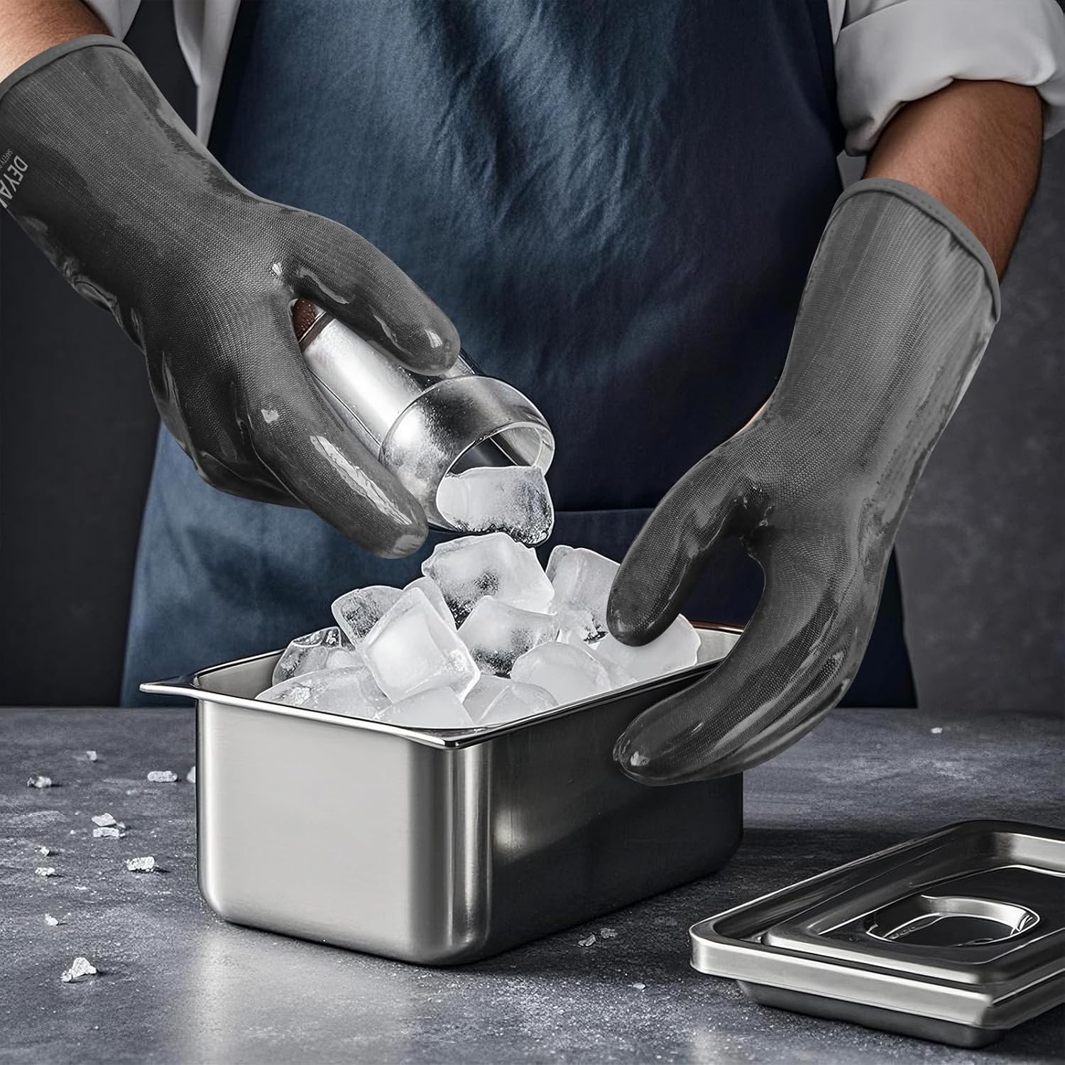 - High Temperature Resistant: Engineered to withstand extreme temperatures from -120°F to 600°F, these grilling gloves sustain prolonged exposure up to 480°F and brief contact at peak heat, while remaining waterproof, odorless, and impervious to grease and stains even when handling hot items