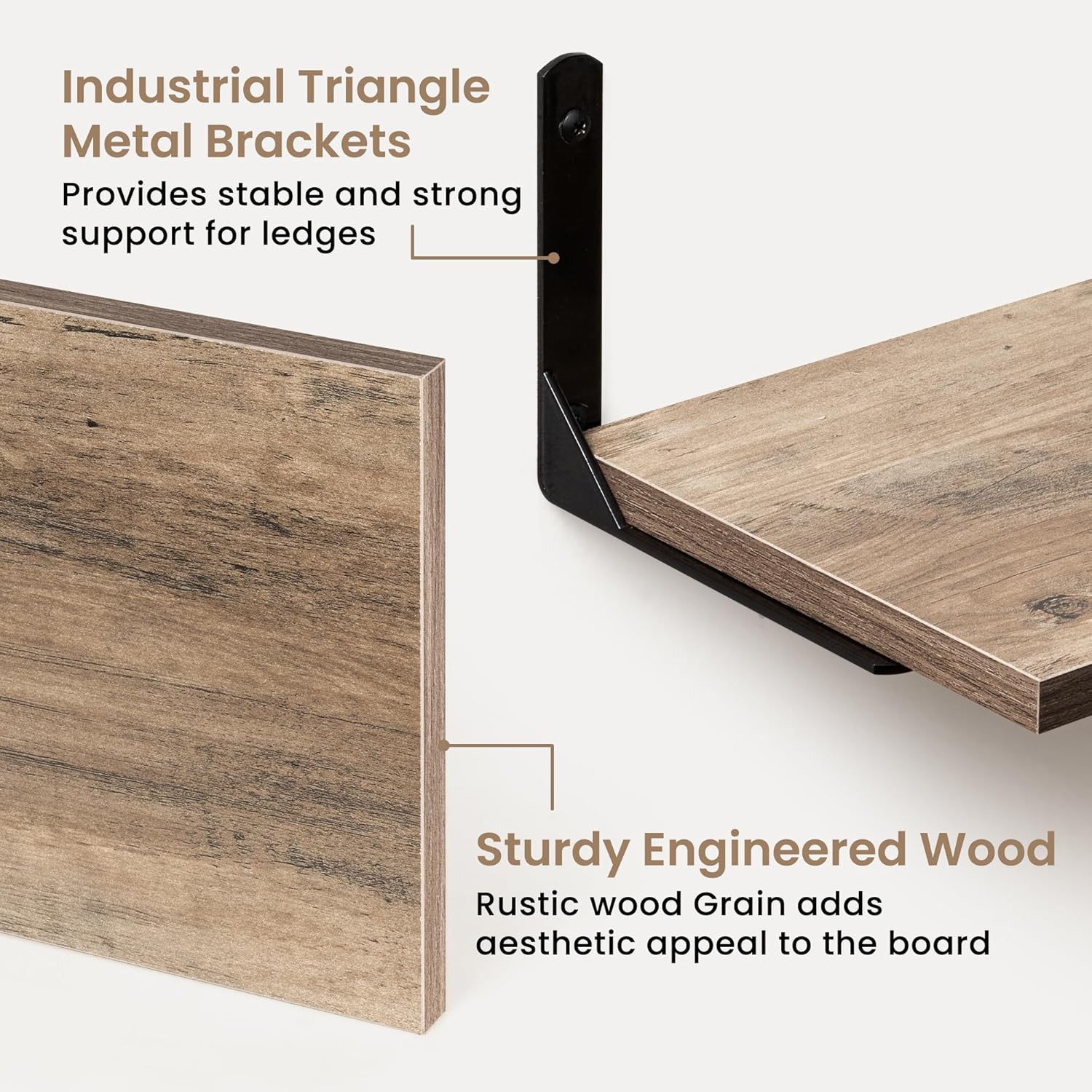 - 【Strong & Durable Construction for Long-Lasting Use】Each shelf is made from premium high-density MDF with a smooth, durable surface resistant to warping and cracking. Paired with heavy-duty black L-shaped steel brackets, these shelves provide excellent strength and stability. Properly installed, each shelf supports up to 50 lbs, perfect for books, kitchen items, and decor. Built to endure daily use in kitchens, living rooms, offices, or bathrooms, combining durability with timeless style.