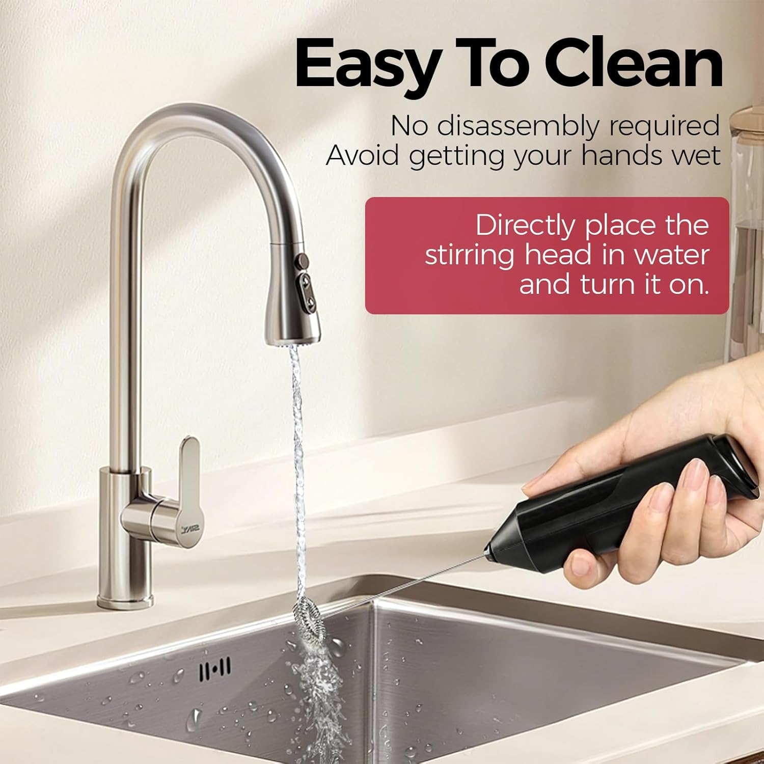 - One-Button Operation: Intuitive push-start mechanism activates the coffee frother instantly. Submerge the stainless steel whisk head 45° in liquids; The instant-release switch stops operation precisely when you lift it, perfect for milk frother enthusiasts crafting lattes
