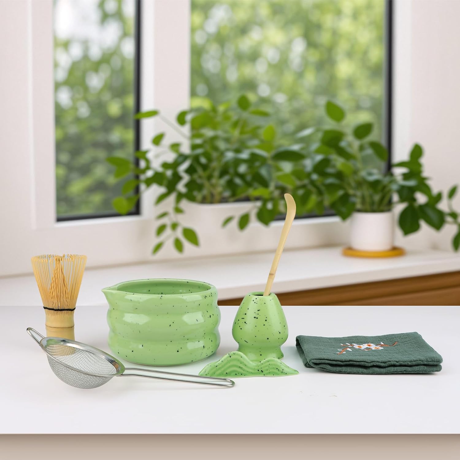 - Elegant Matcha Green Design & Functional Spout: Unified matte green color scheme enhances aesthetic appeal. Wide-mouth bowl and ergonomic spout allow effortless whisking and sharing. Whisk holder matches bowl color for a cohesive, ceremonial look.