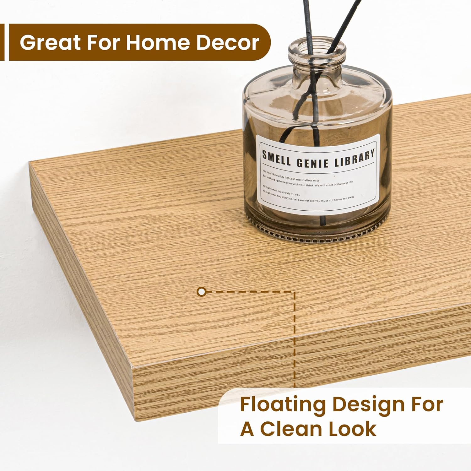 Fun Memories Floating Shelves for Wall, 32 Inch Rustic Wood Wall Mounted Shelves for Bathroom, Bedroom, Kitchen, Living Room, Deep Floating Shelves for Storage & Home Decor (Oak, Set of 2)