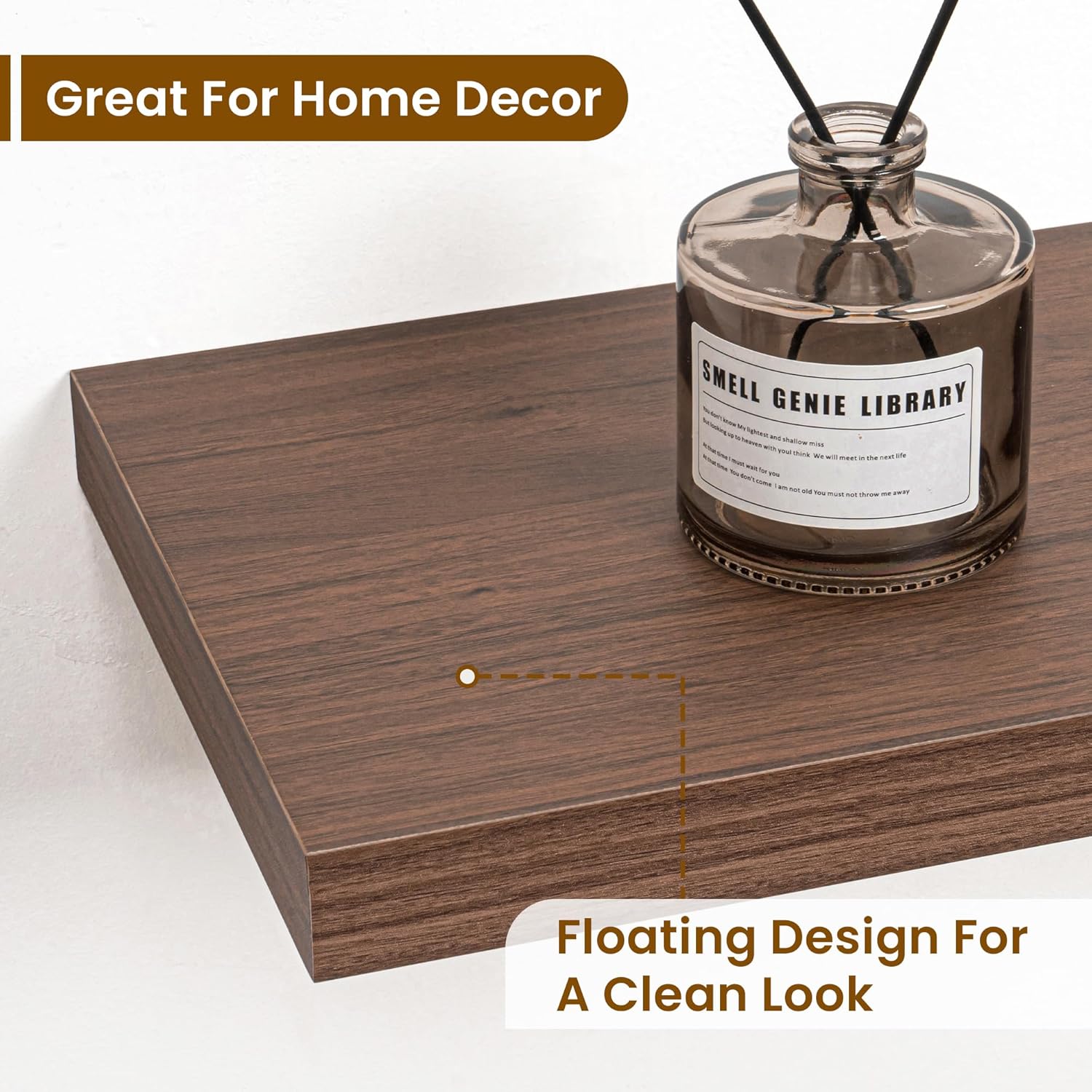 Fun Memories Floating Shelves for Wall, 32 Inch Rustic Wood Wall Mounted Shelves for Bathroom, Bedroom, Kitchen, Living Room, Deep Floating Shelves for Storage & Home Decor (Walnut, Set of 2)