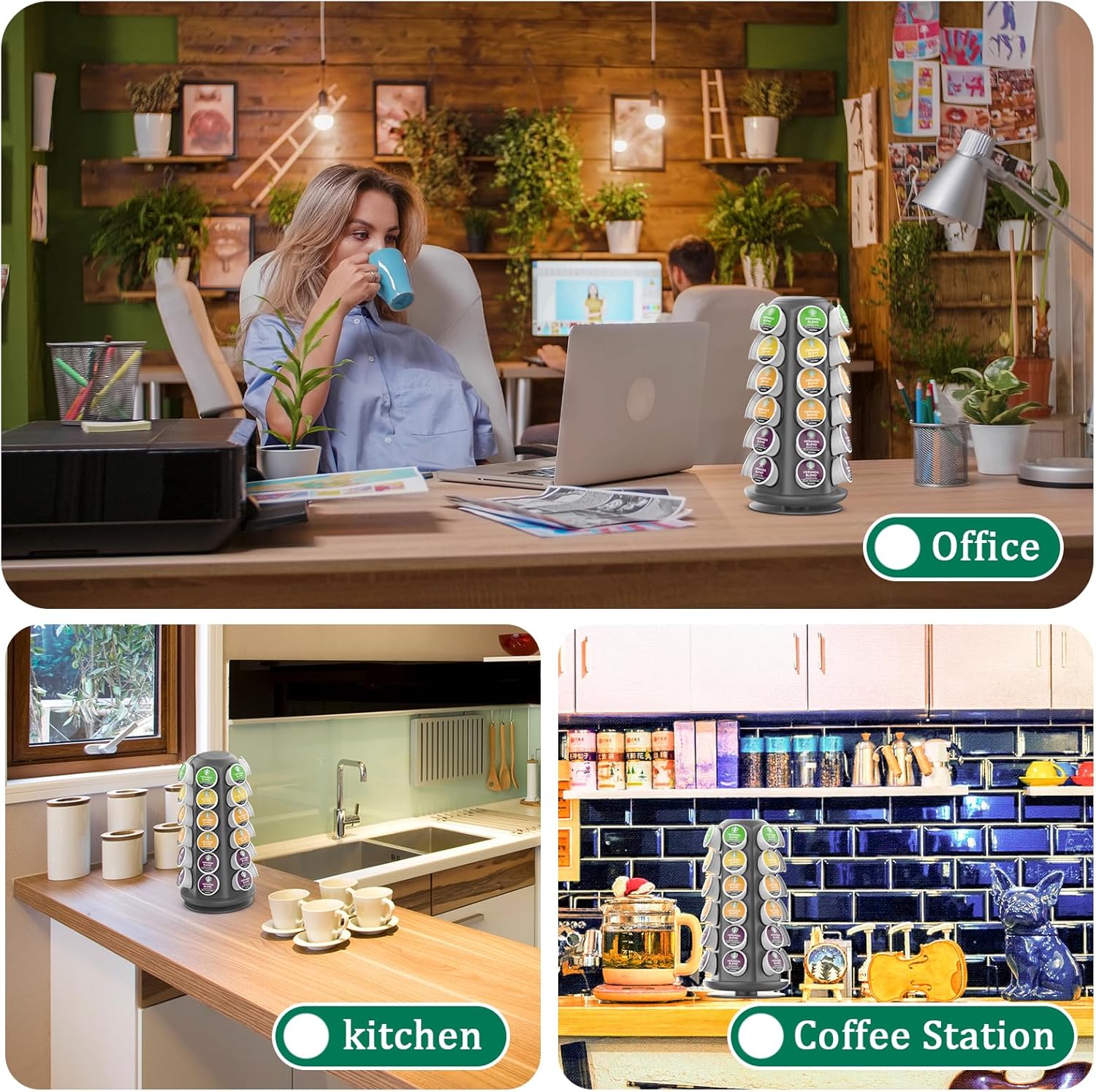 - 【Heavy-Duty Materials & Special Design】Our kcup coffee pods holder is made of premium plastic and high-strength metal double bearings, which is strong in structure, durable and easy to clean. Without any discomfort of fingerprint residue, the surface of kcup holder is made into frosted texture, which is perfect match your elegant lifestyle.