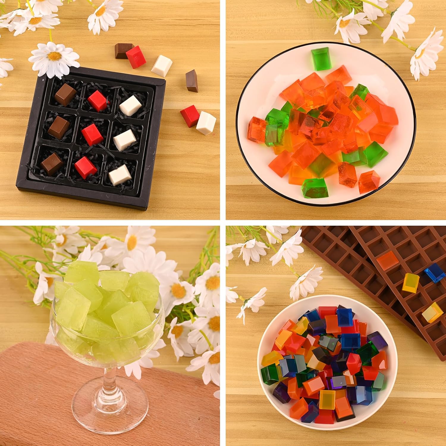 - ACKAGE INCLUDE: Each pack contains 2 pieces brown 72 cavities mini silicone molds, you can make 144 pieces bite size candy chocolate snacks at same time.( TIPS: Place your jello molds on a cookie sheet before filling them. It makes placing them transfer very simple and very easy)