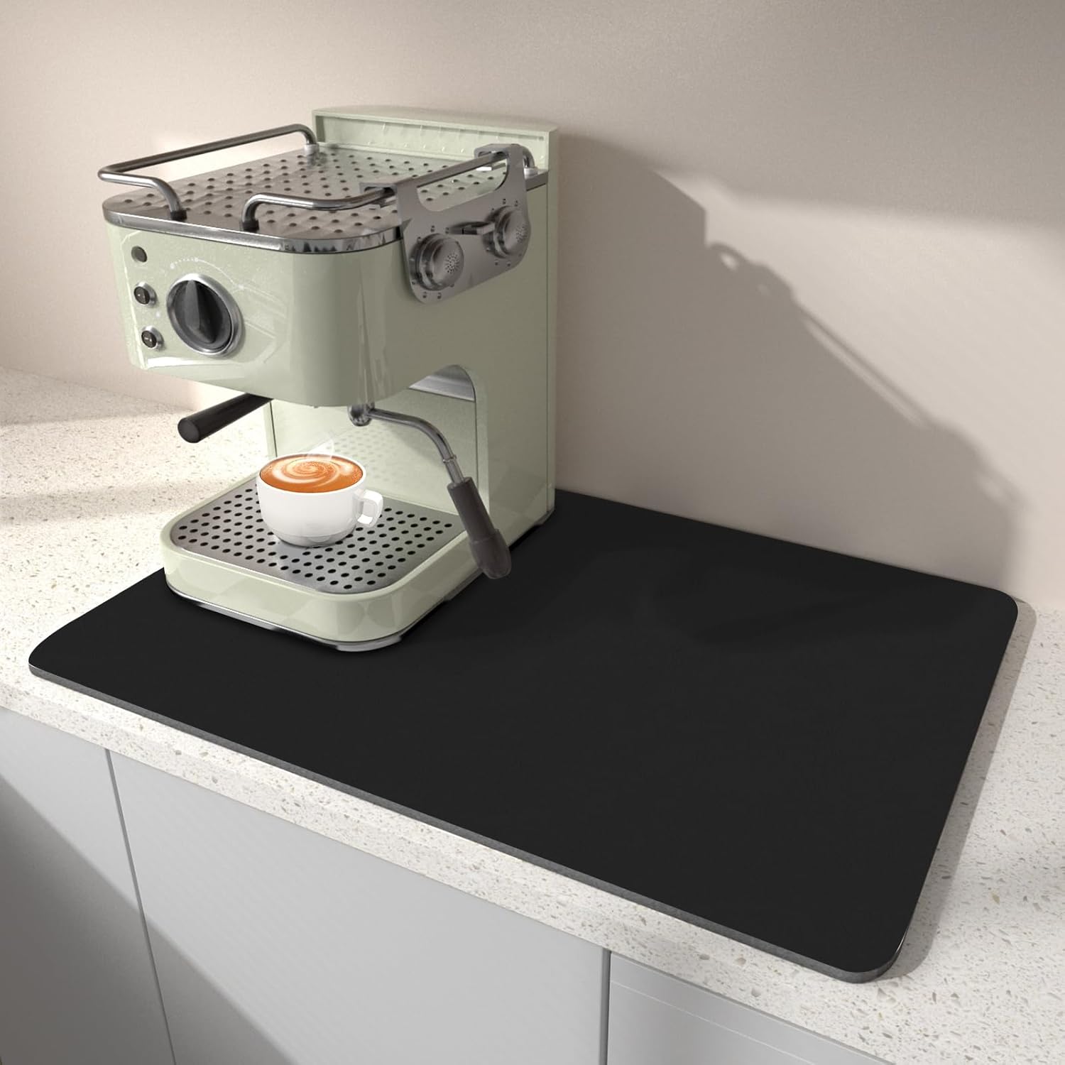- Stain-Resistant & Durable Design: This coffee bar mat made of PU material and diatomaceous earth for superior stain resistance. Effortlessly hides coffee spills, milk splatters, and other messy stains without frequent wiping. The coffee machine mat is highly durable construction ensures long-term reuse, even in busy environments.