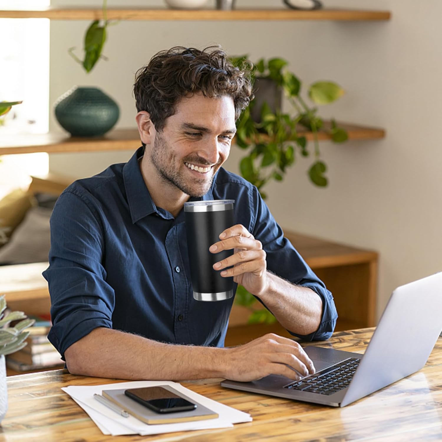20oz Tumbler Bulk with Lid and Straw, Stainless Steel Double Wall Vacuum Insulated Travel Mug, Powder Coated Coffee Cups for Hot and Cold Drinks,Funny Gifts for Women Men(Black,4)