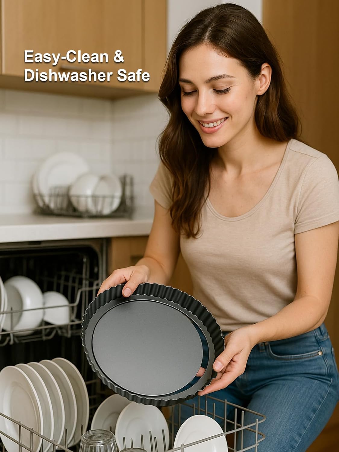- 【Removable Bottom for Easy Demolding】 The pans come with a detachable bottom, which is convenient for demolding and makes the finished product more complete and beautiful. The non-stick coating and dishwasher-safe feature also ensures that cleaning up is a breeze.