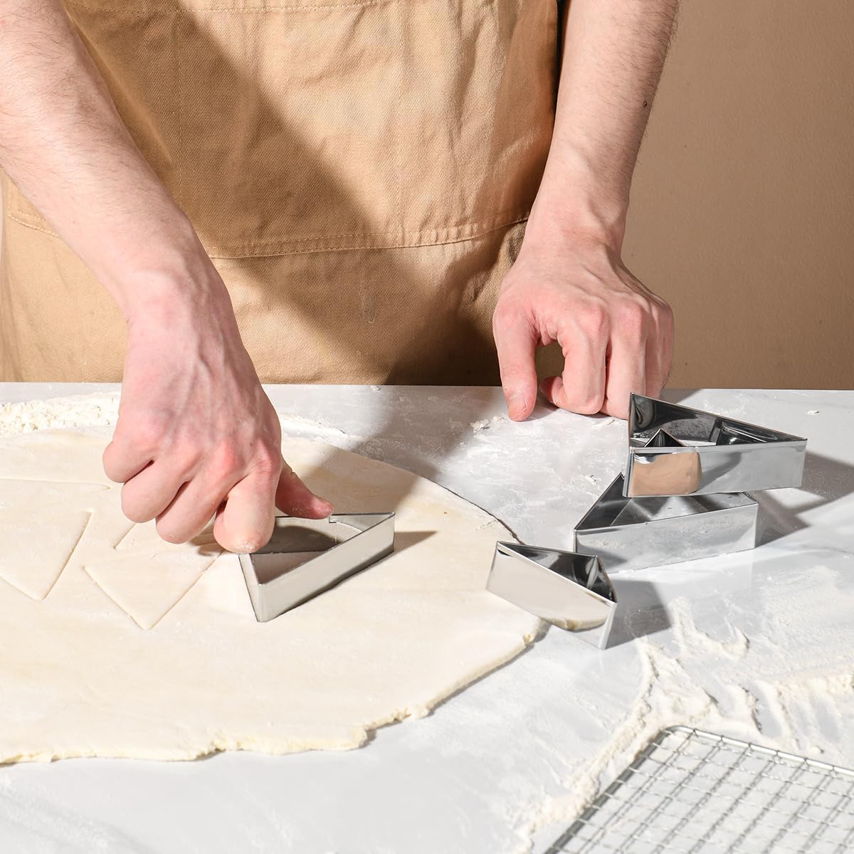 - 【Equilateral Triangle Cookie Cutter Set】 Show our equilateral triangle shaped cookie cutters biscuit fondant mold in four assorted sizes. Geometric shapes can stimulate children's spatial imagination. Let's start making these triangle cookies with kids or friends!
