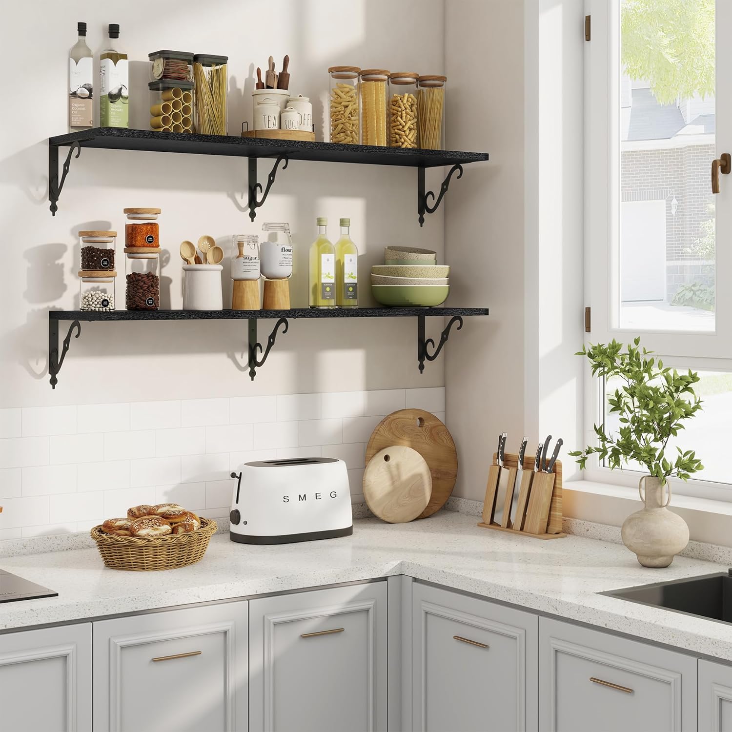- Suitable for All Occasions: The floating shelves are designed for storage and decoration, wall-mounted shelves are ideal accent for any room - from keeping seasoning, plates, spices bottles in a kitchen area to holding books, collection, globe, photo frame, small plants and trophies in a living room, office, study or organizing hand towels and toiletries in a bathroom