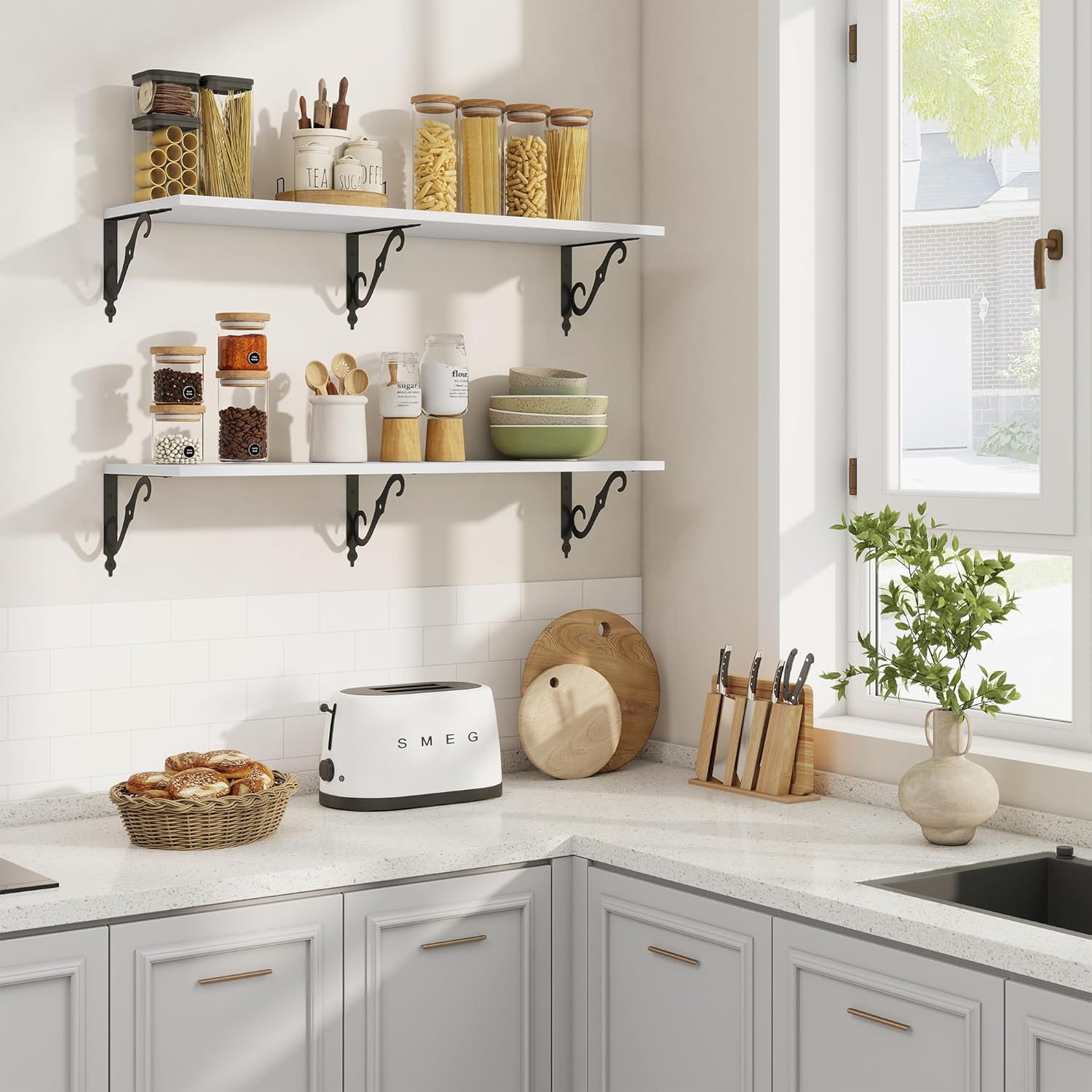 - Suitable for All Occasions: The floating shelves are designed for storage and decoration, wall-mounted shelves are ideal accent for any room - from keeping seasoning, plates, spices bottles in a kitchen area to holding books, collection, globe, photo frame, small plants and trophies in a living room, office, study or organizing hand towels and toiletries in a bathroom