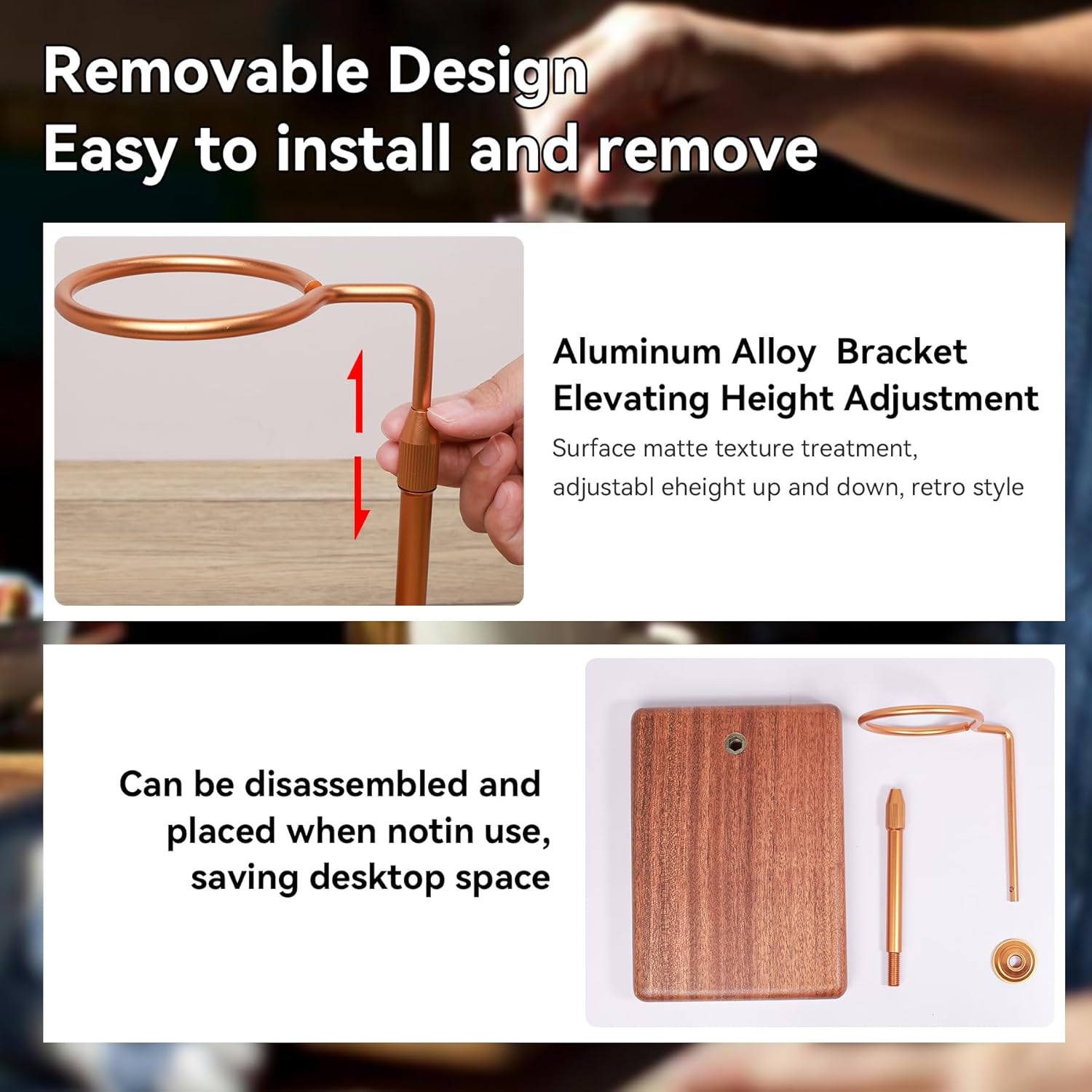 Pour Over Coffee Maker with Adjustable Stand & Wooden Base, Dripper Stand for Manual Coffee Brewing, Coffee Filter Holder, Tea Strainer Stand for Home, Café, Restaurant, Camping, Golden