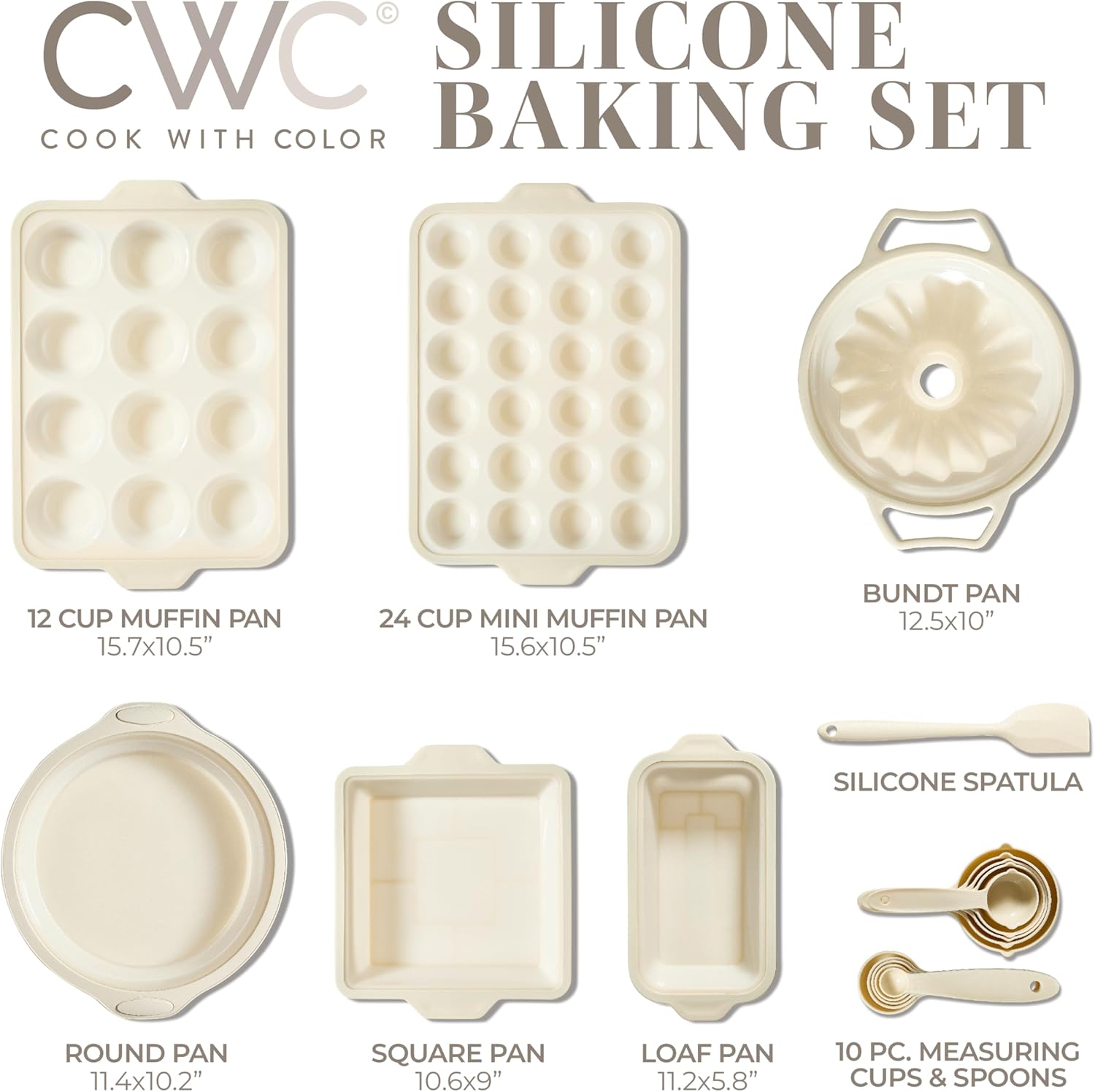 COOK WITH COLOR 17 Pc. Silicone Baking Pan Set - Non-Stick & Easy Clean Silicone Muffin Pans for Baking with Sturdy Metal Frame for Stability, Flexible Cake Molds, Includes Measuring Cups and Spoons