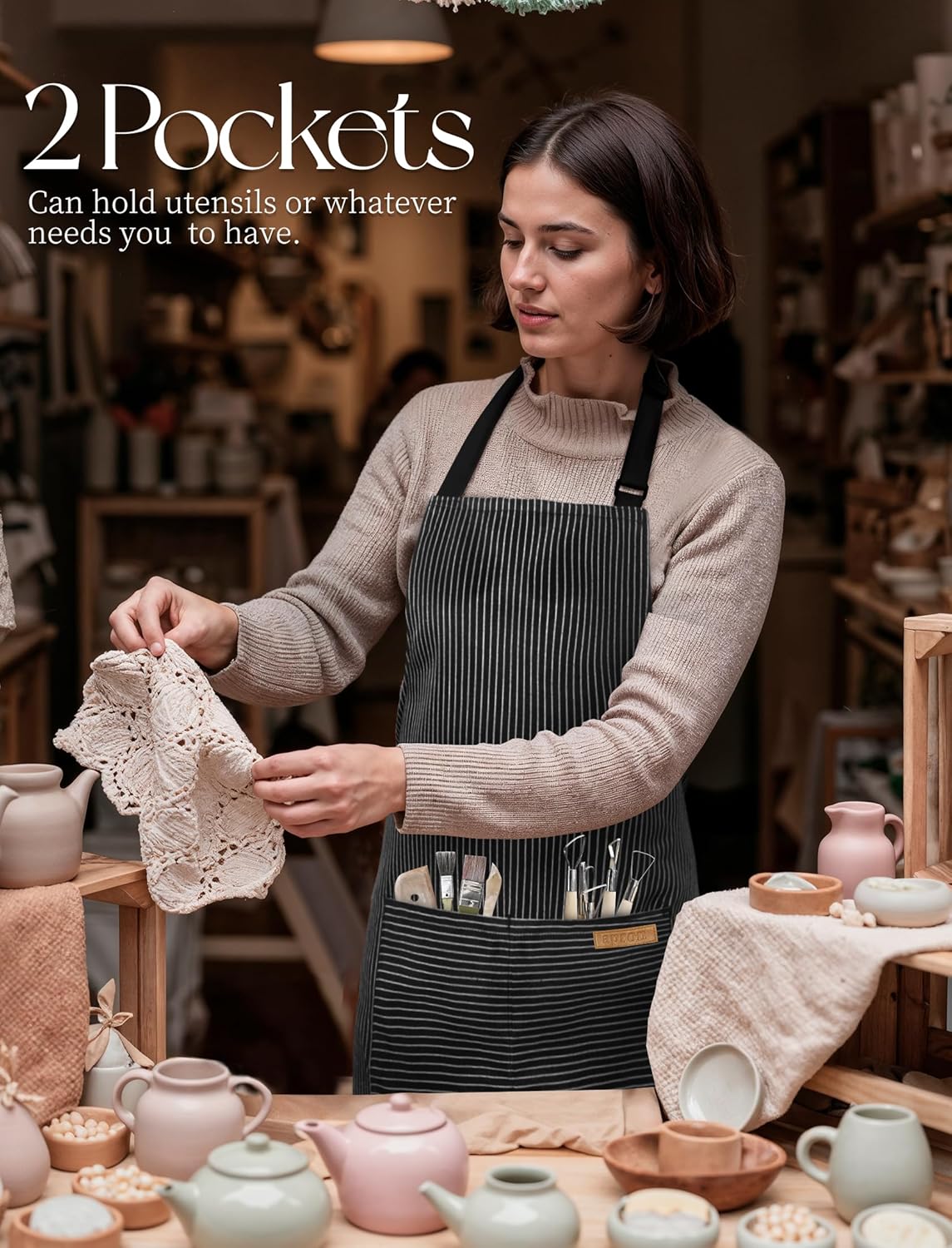 - 2 LARGE POCKETS: Kitchen apron comes with 2 large pockets. You can put your kitchen utensils you want in these pockets or the necessary equipment if you are dealing with painting arts