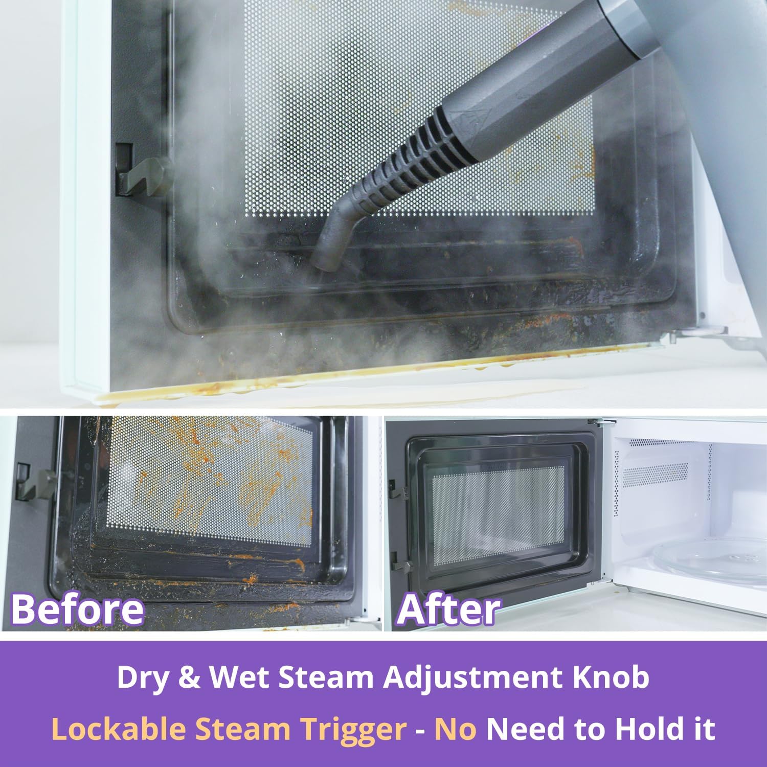 Steam Cleaner Handheld: 1200W Fast 10-Sec Heat-Up-750mL (25oz) Tank-No Cooling-Refill Anytime-Lockable Steam Trigger-14-Piece Kit Hand Held Steamer for Home Car Grout Tile Cleaning Pink