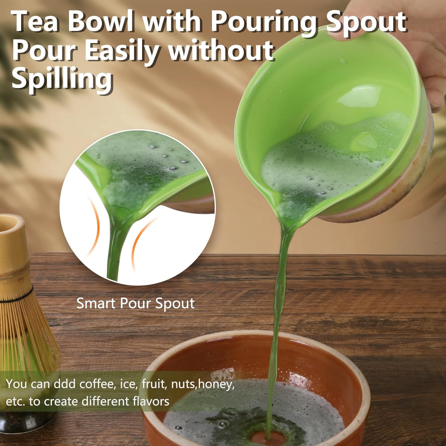 Matcha Whisk Set,Bamboo Chasen Whisk,Green Matcha Bowl with Spout, Chashaku Scoop, Sifter,Matcha Whisk and Holder – 5 PCS Matcha Kit for Matcha Lovers Making Latte Drinks,Gift for Starters Lovers