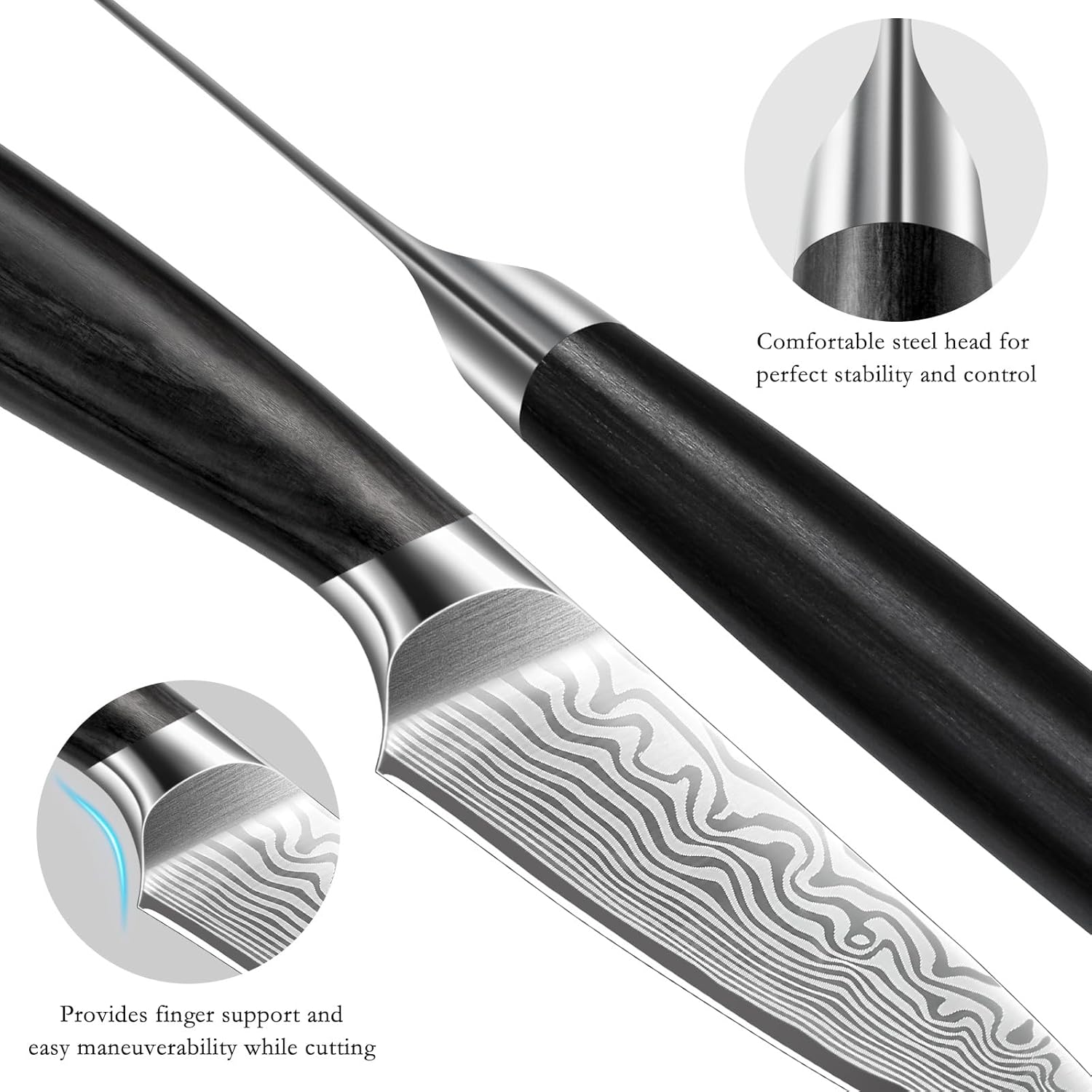 - 【Ergonomic Pakkawood Handle】Designed with comfort and efficiency in mind, the ergonomic Pakka wood handle ensures a firm grip, reduces hand fatigue and enhances control when peeling fruits and vegetables, providing maximum strength and long-lasting durability