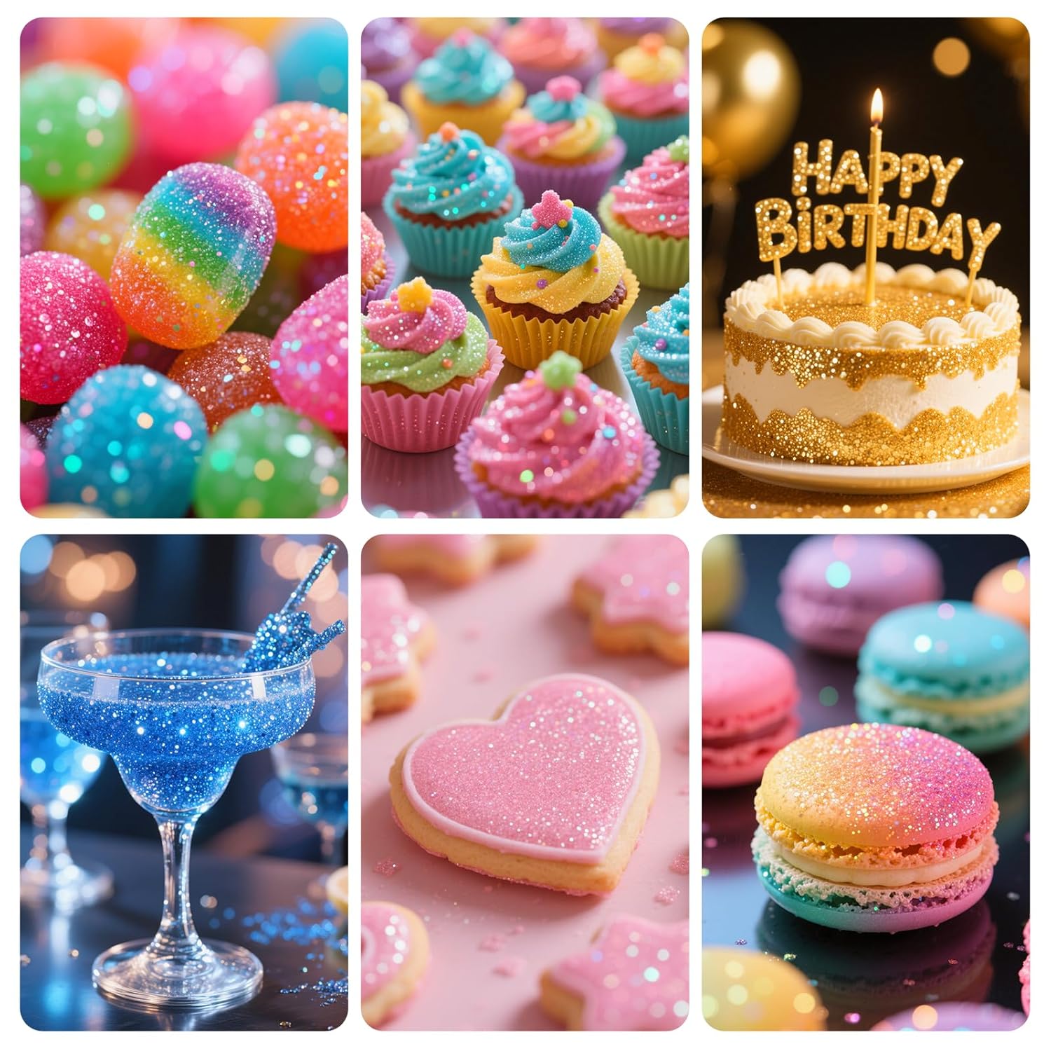 - Easy to Use: Edible sparkle powder can be added directly to cocktails and food for added shine. For drinks, cakes, cookies, chocolates, strawberries and all kinds of holiday decorations.