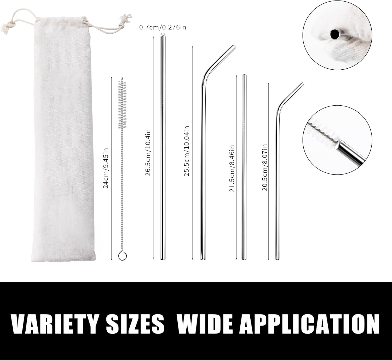 - 【RAINBOW STRAWS REUSABLE SET, GREAT VALUE】Includes 4 pcs 8.5" straight straws, 4 pcs 8.5" bent straws, 4 pcs 10.5" long straight straws, 4 pcs 10.5" tall curved straws, 16 pcs silicone straw tips, 4 pcs straw brush and a travel bag. Colorful titanium reuseable straws, variety sizes and shapes - perfect steel straws set for kitchen, bar and picnic.