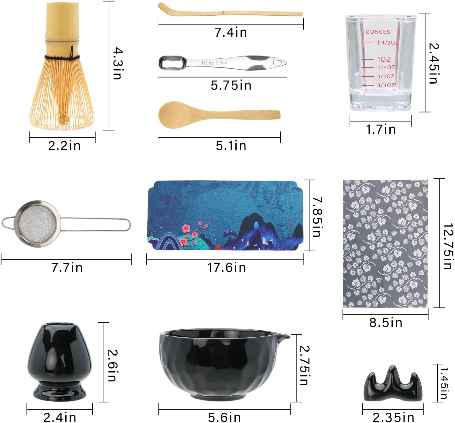 - 11 Matcha Kit Tool Set: This all-inclusive matcha whisk set features 9 traditional Japanese matcha tools and 2 measuring aids (spoon + glass cup), providing everything needed to craft authentic matcha. Perfect for beginners and enthusiasts, this Japanese tea set delivers a genuine tea ceremony experience—without including tea powder. (this matcha kit set does not contain green tea powder)