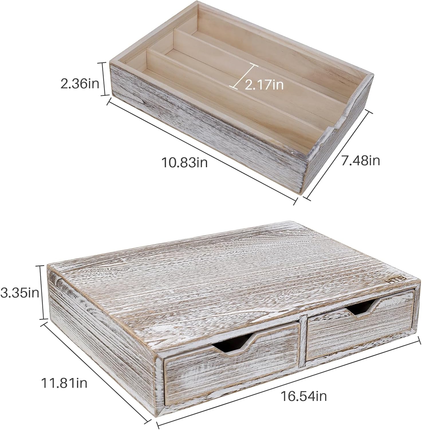 HTB K Cup Holder Compatible with K Cups, Coffee Pod Holder Holds Up 30 Cups, K Cup Organizer Storage Drawer Wood K Cup Drawer Vintage White