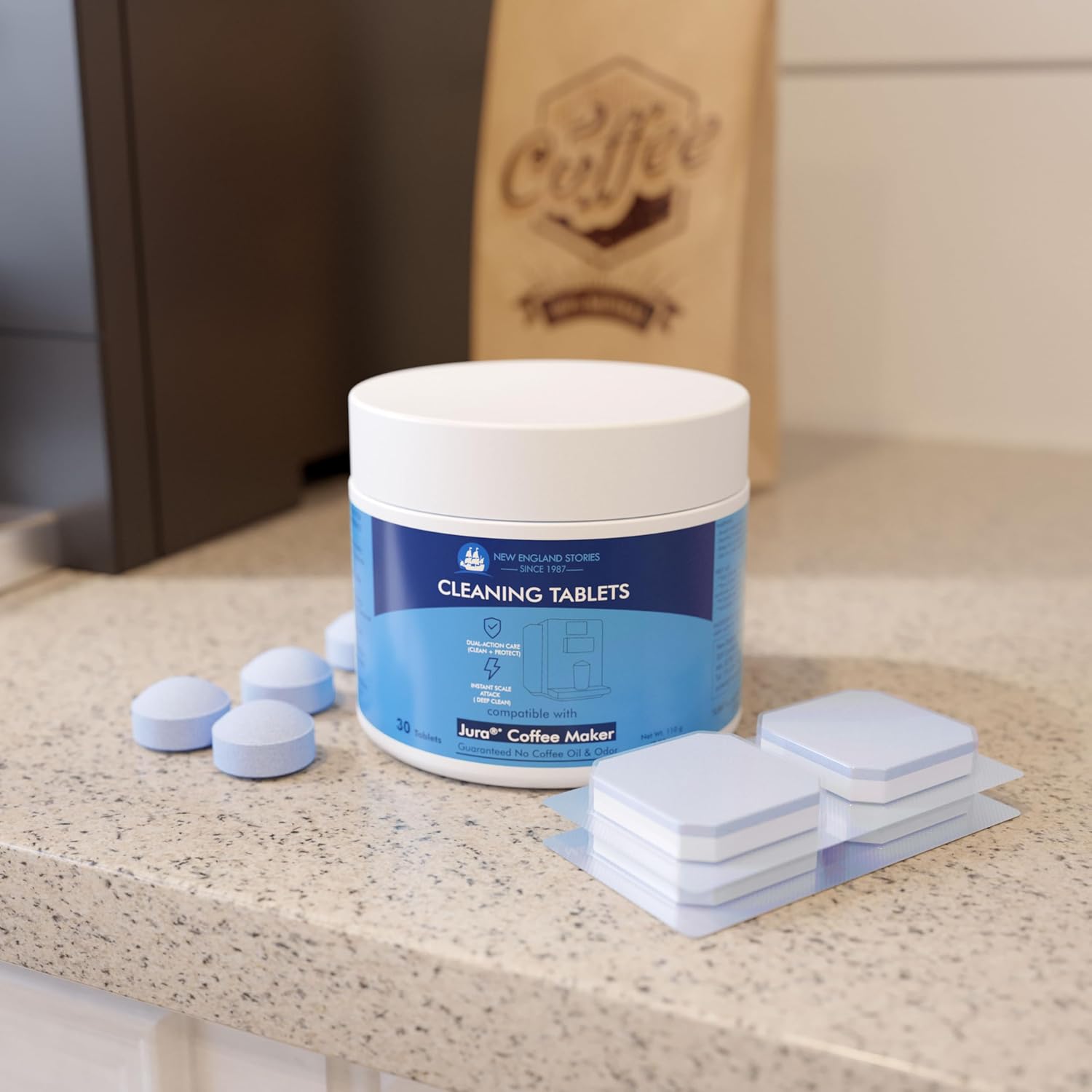New England Stories Jura Compatible 30 Cleaning + 30 Descaling Tablets Kit - Clean Coffee Oils & Remove Limescale for Coffee Machines