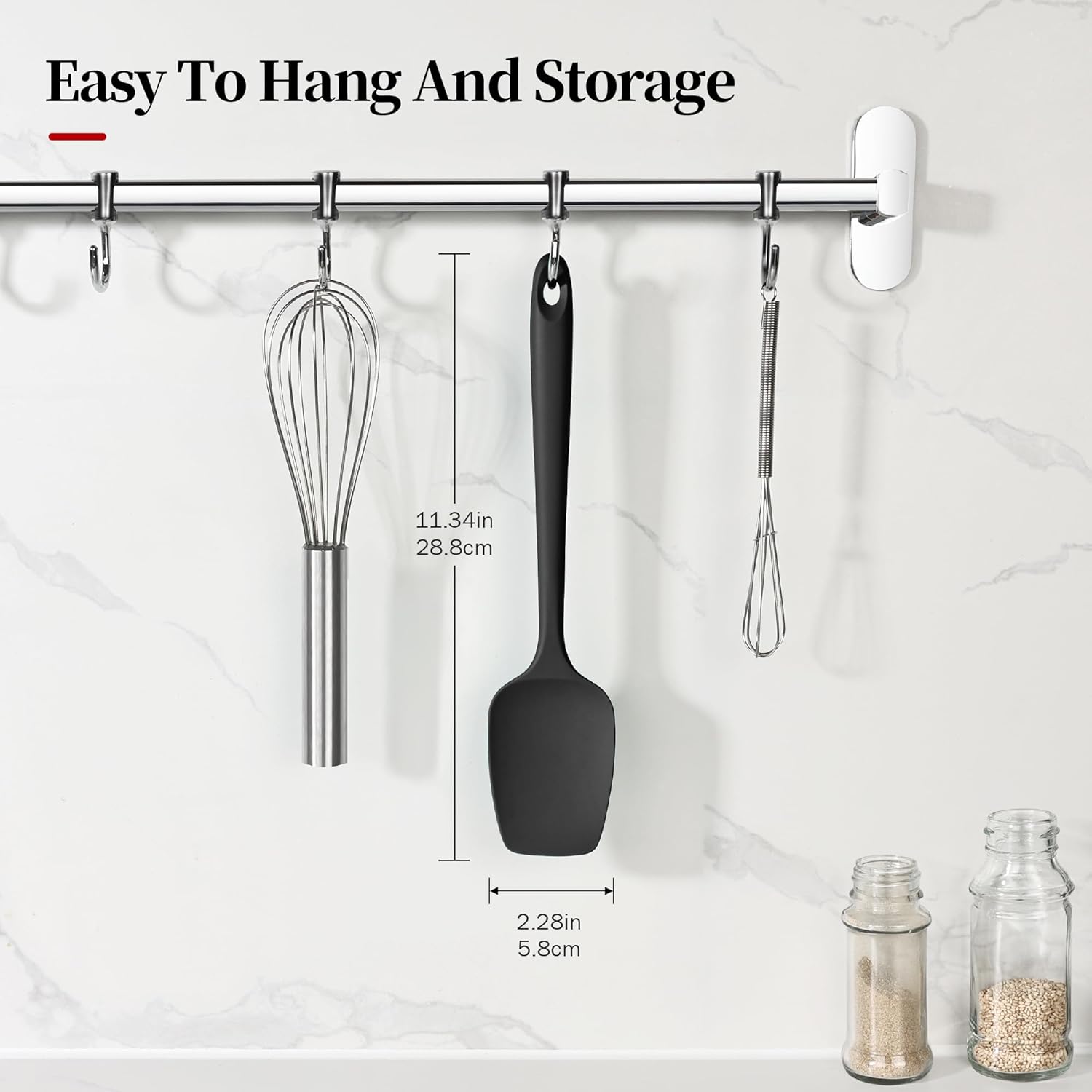 - [Seamless Design & Dishwasher Safe & Easy Storage] This baking spatula's smooth surface keeps food from sticking, so messy ingredients like caramel or melted cheese wash off easily. Made as semless construction, there are no hidden spots for food to get stuck. It's tough enough for daily dishwasher use, and the handy loop makes storage simple and keeps your kitchen tidy. Whether you're scraping peanut butter or mixing batter, cleanup takes seconds—just rinse and go.
