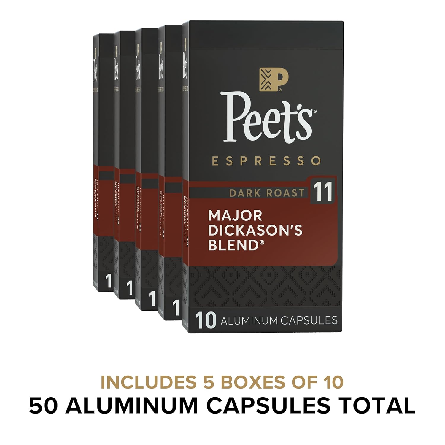 Peet's Coffee, Dark Roast Espresso Capsules, Compatible with Nespresso Original Machines - Major Dickason's Blend Intensity 11, 50 Count (5 Boxes of 10 Espresso Capsules)
